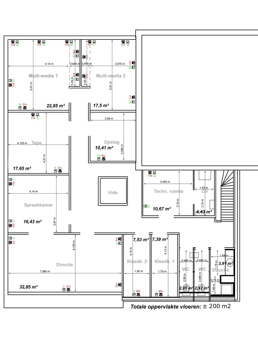 Kantoor op de eerste verdieping. ca 236 m²
