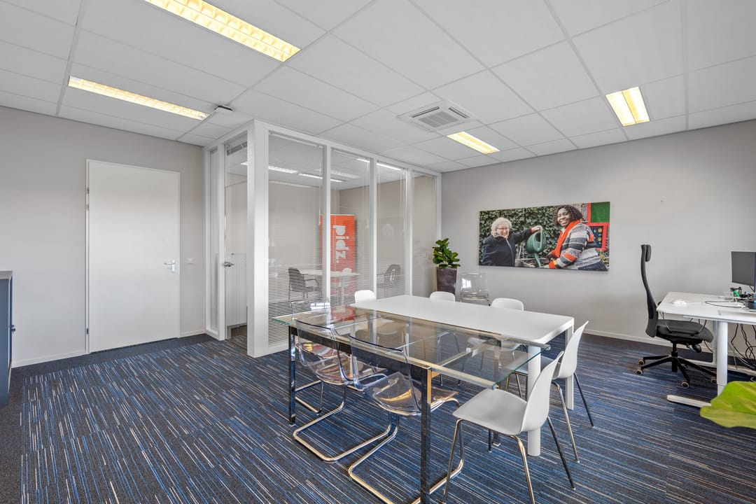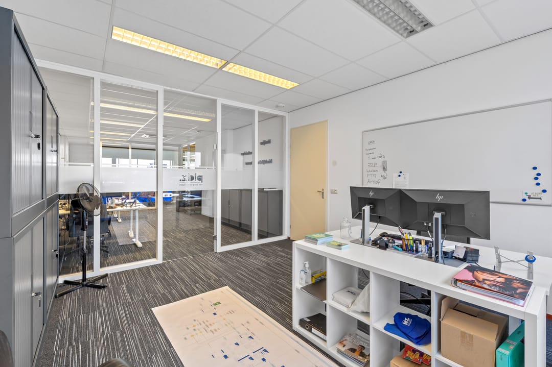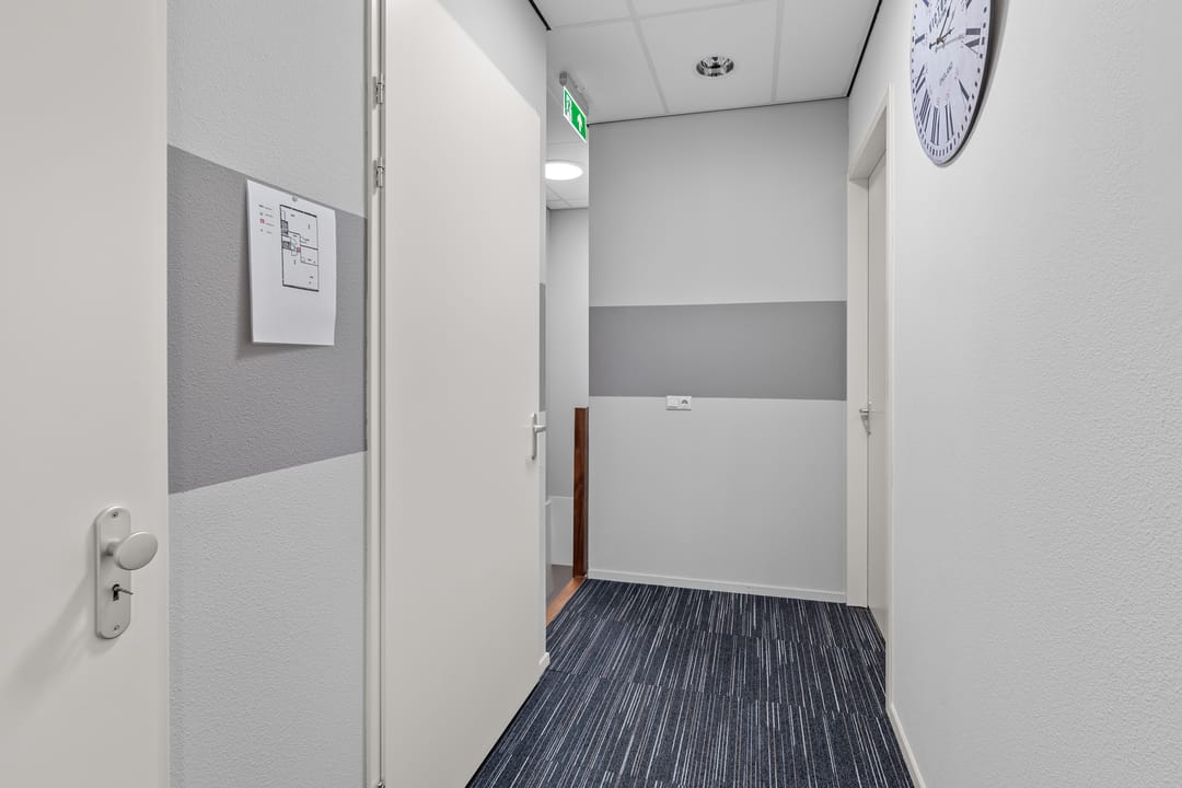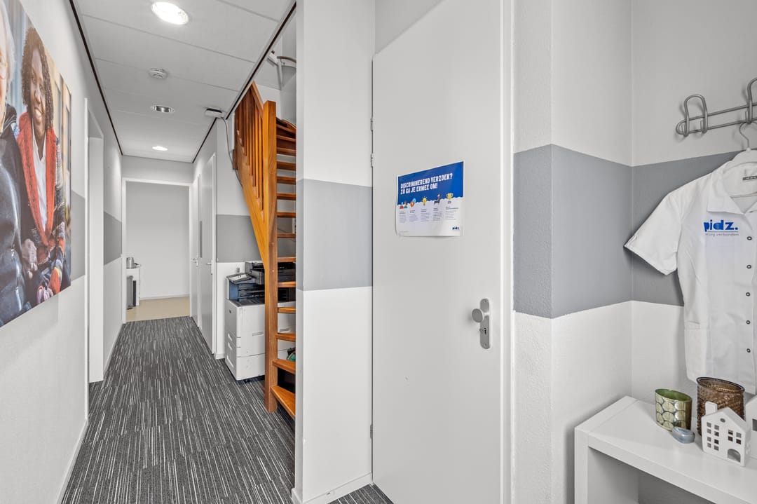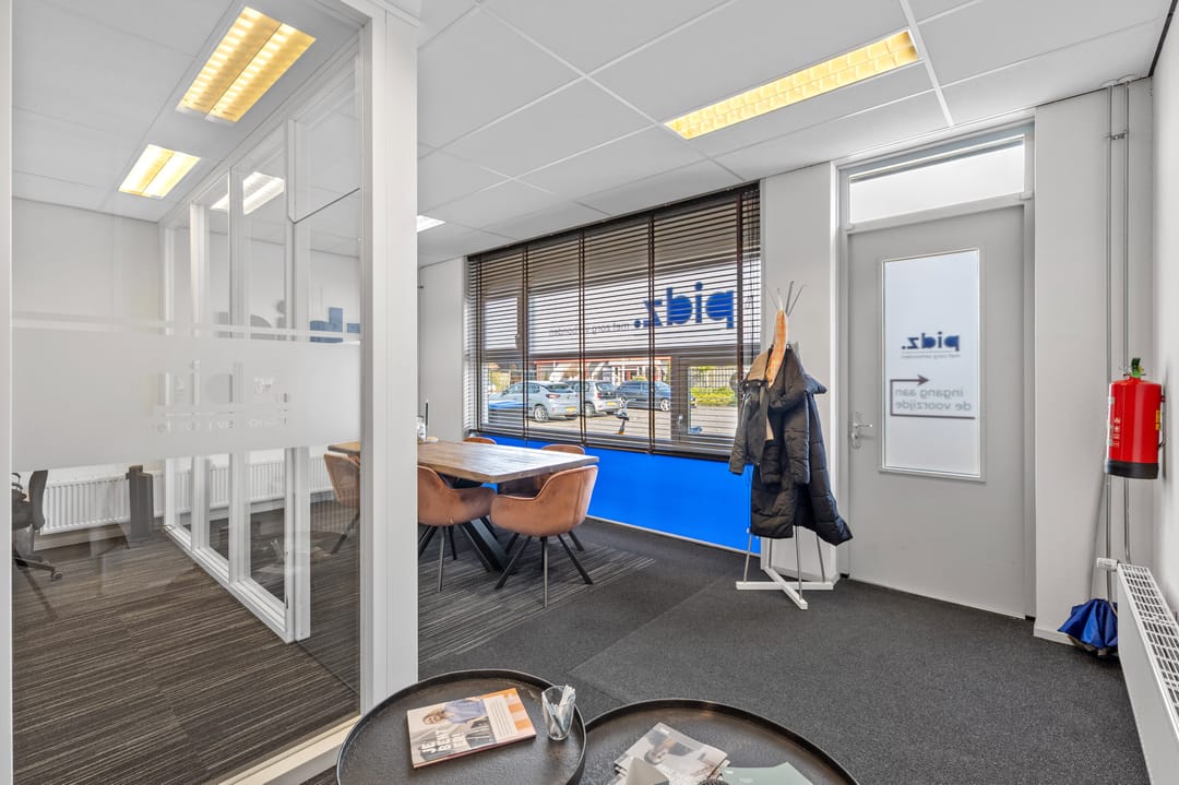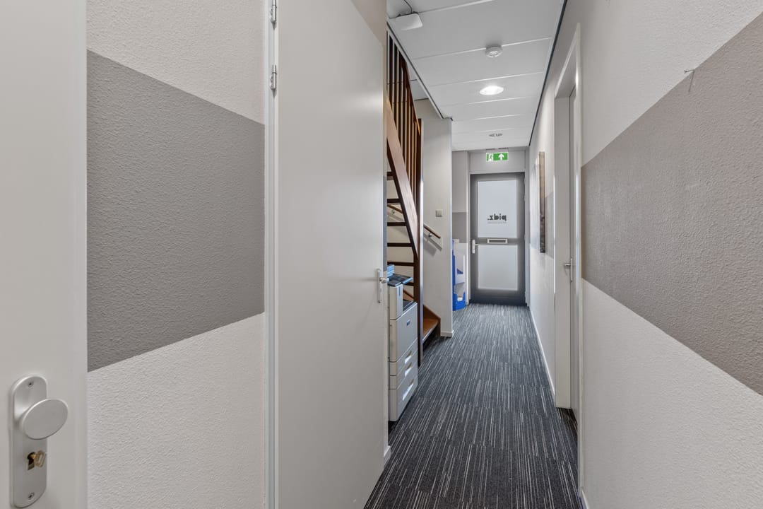 Dankzij de aanwezigheid van zowel een voor- als achterentree is de kantoorruimte praktisch in gebruik en goed toegankelijk voor medewerkers en bezoekers.