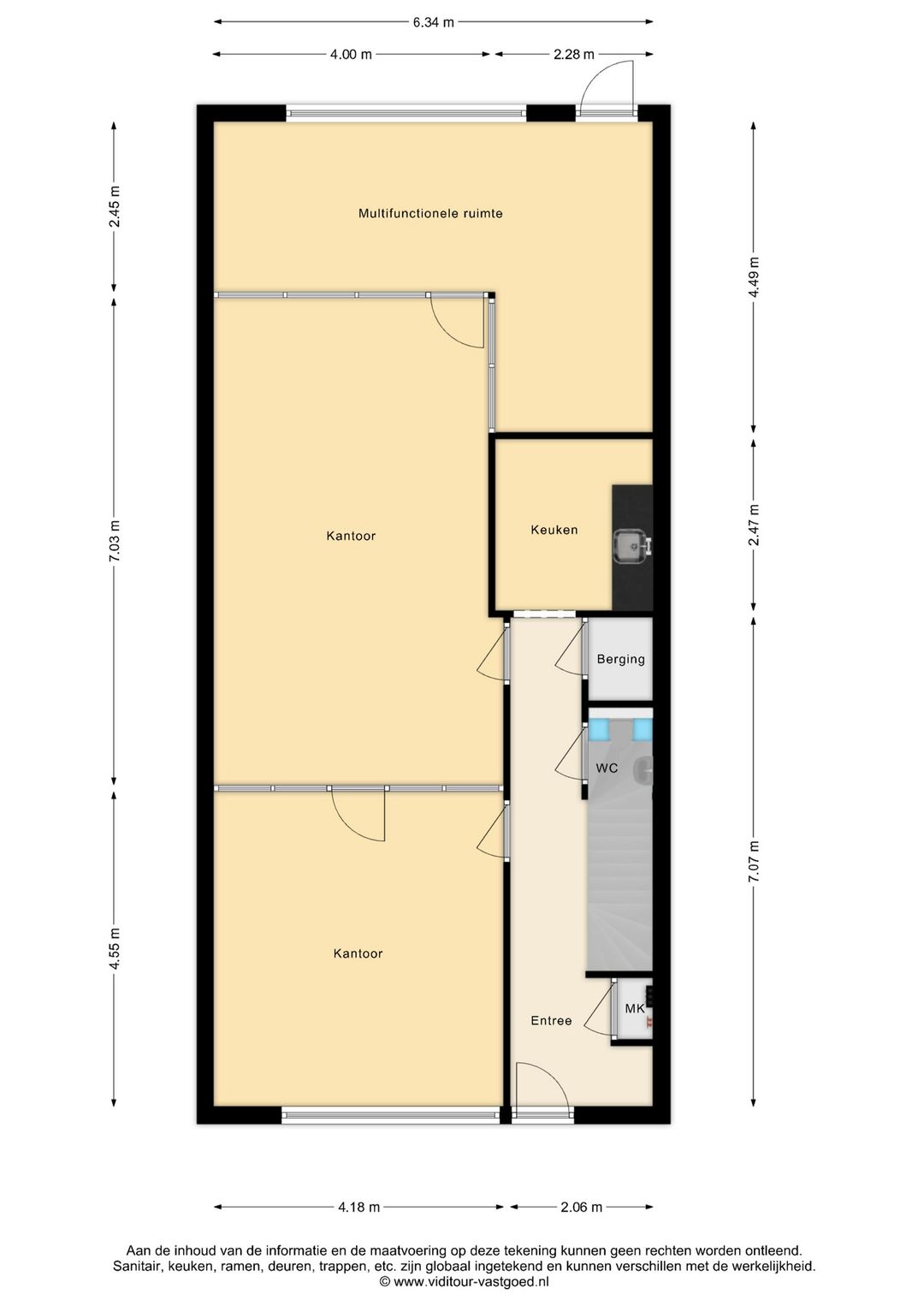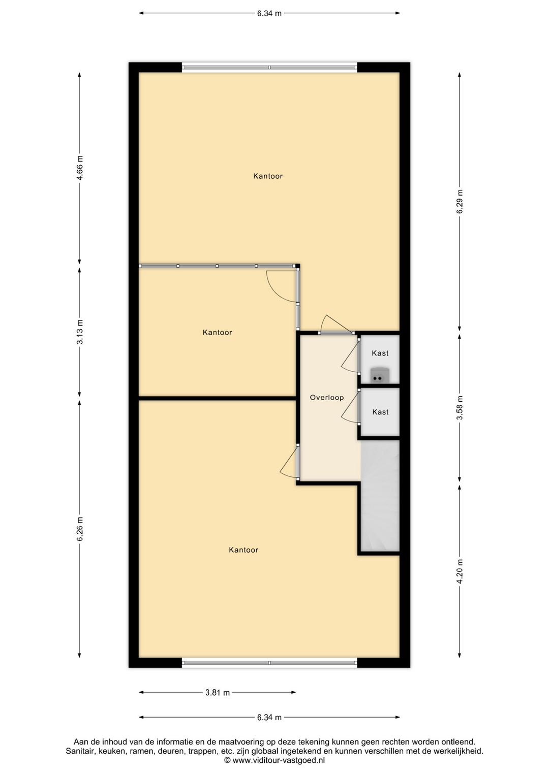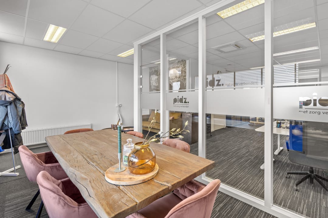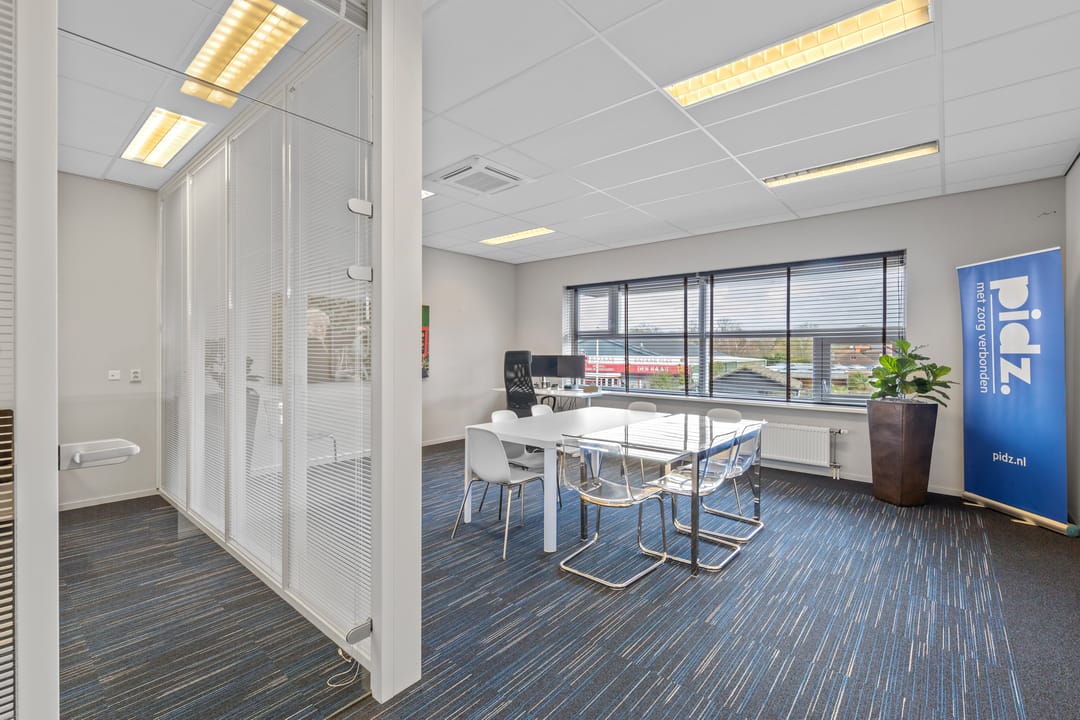 Dankzij de aanwezigheid van zowel een voor- als achterentree is de kantoorruimte praktisch in gebruik en goed toegankelijk voor medewerkers en bezoekers.