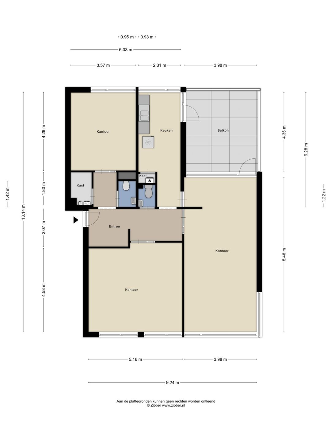 Ca. 103 m² kantoorruimte op de 2e verdieping, bestaande uit drie separate kantoorruimten, pantry, gangzone en sanitaire voorzieningen;