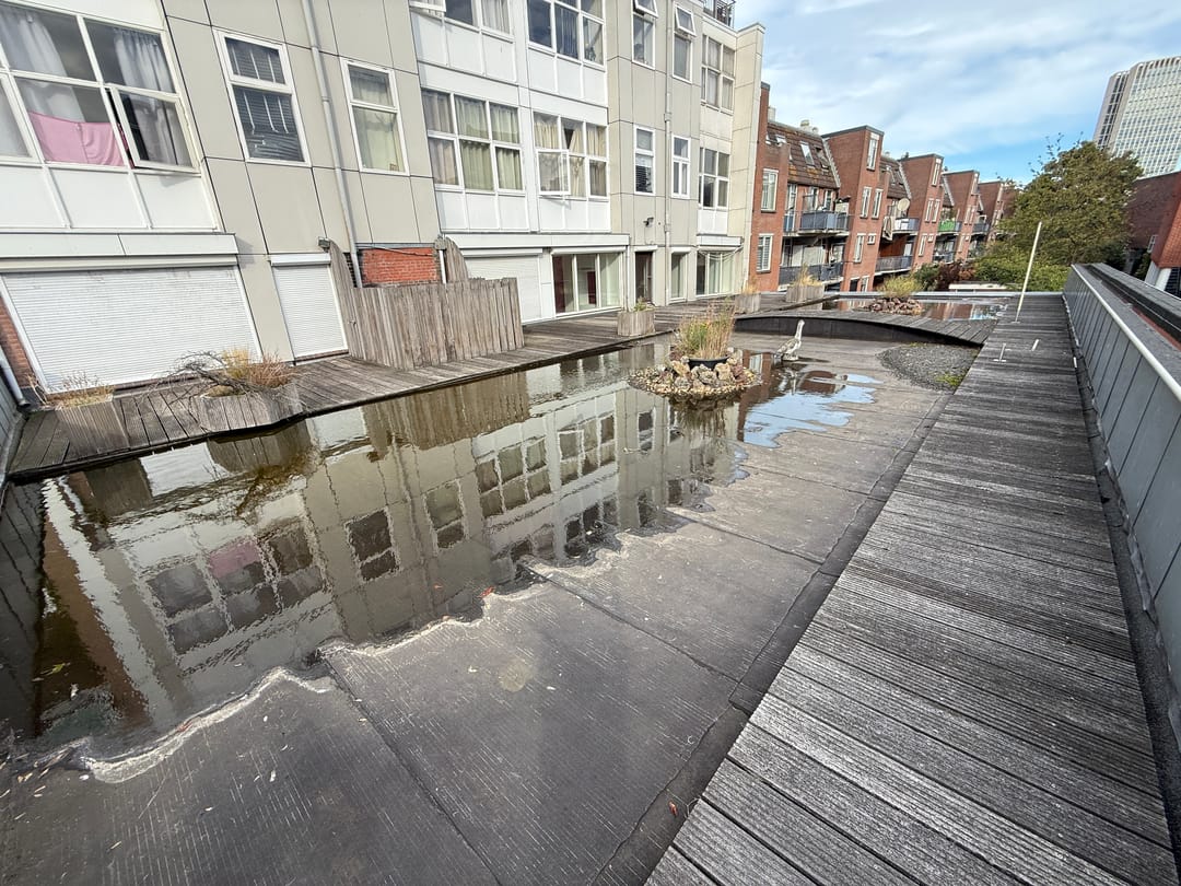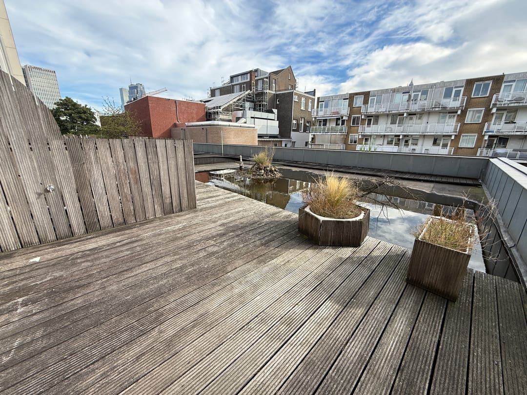 Huurders maken gezamenlijk gebruik van een vergaderruimte voor het ontvangen van klanten, een ruim dakterras van ca. 80 m² en een sfeervol bruin café — ideaal voor de vrijdagmiddagborrel of informele ontmoetingen.