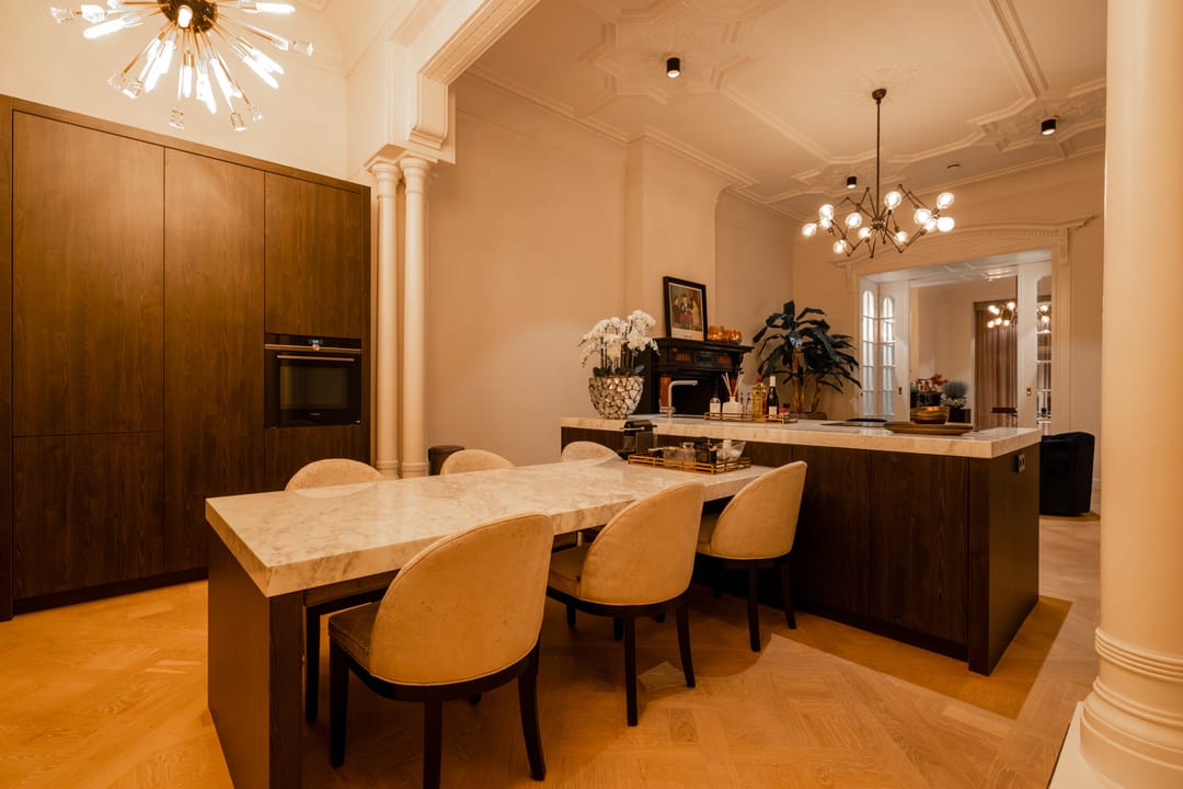 Set within a monumental residence in one of the finest architecturally significant lanes in the “ Scheepvaartkwartier “ this spectacular Town House residence boasts large floor areas, high ceilings, tall windows and intricate original features.
