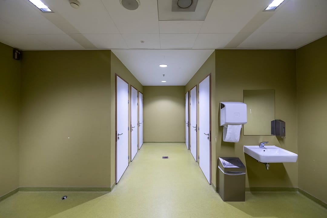 - per bouwlaag in ruime mate voorzien in sanitair met separate dames- en herentoiletgroepen.
