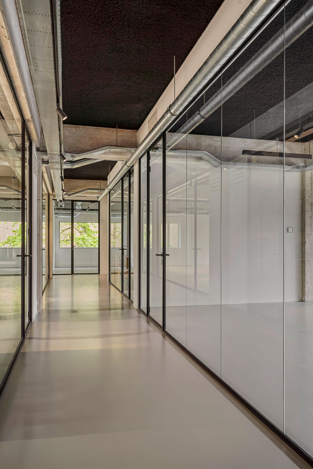 De eerste verdieping (354 m² v.v.o.) beschikt over 4 nieuwe kantoren met diverse oppervlaktes, welke zich ideaal lenen voor start/scale-ups en (innovatieve) ondernemers. De moderne ruimtes zijn voorzien van hoge plafonds en glazen wanden, welke het ruimtelijk gevoel versterkt. De huidige beleving wordt aangevuld met een warme inrichting en een combinatie met groene wanden, om zo een dynamische en inspirerende omgeving te bieden. Het gebouw zelf beschikt over 3 verdiepingen met meerdere ondernemers, waarbij samenwerken met gelijkgestemden centraal staat.