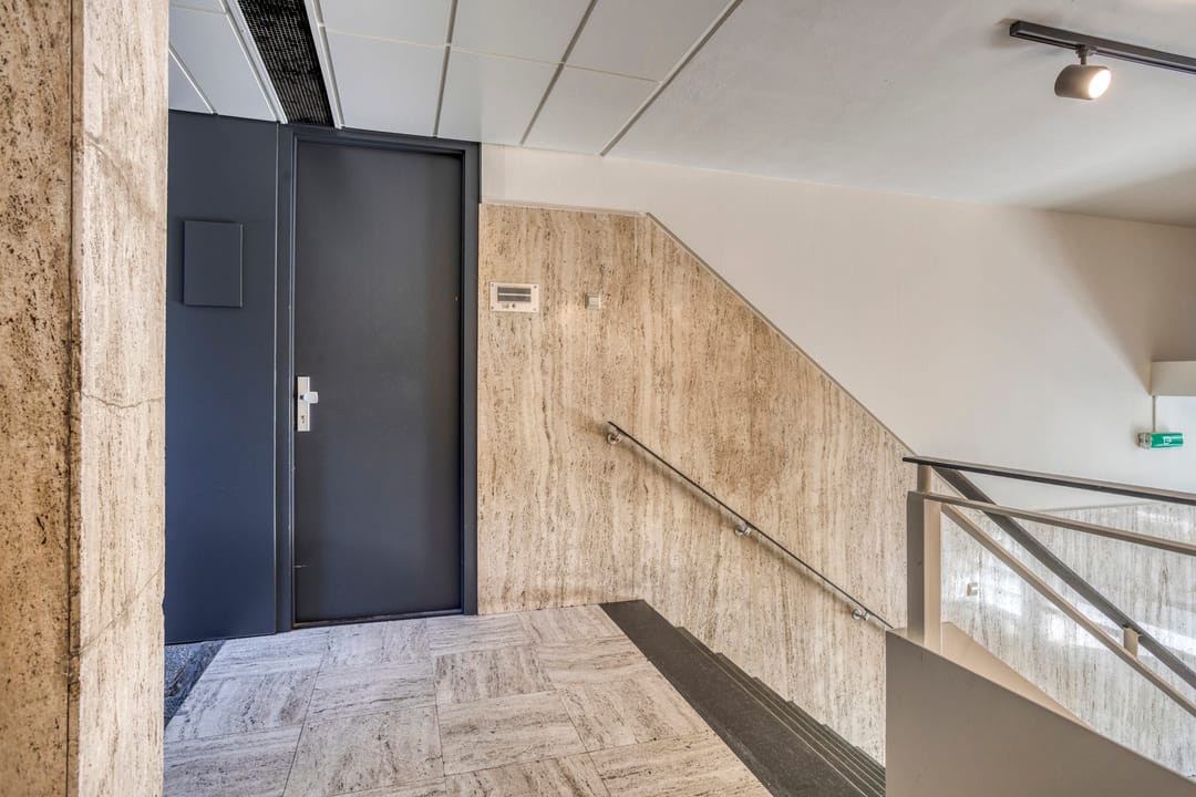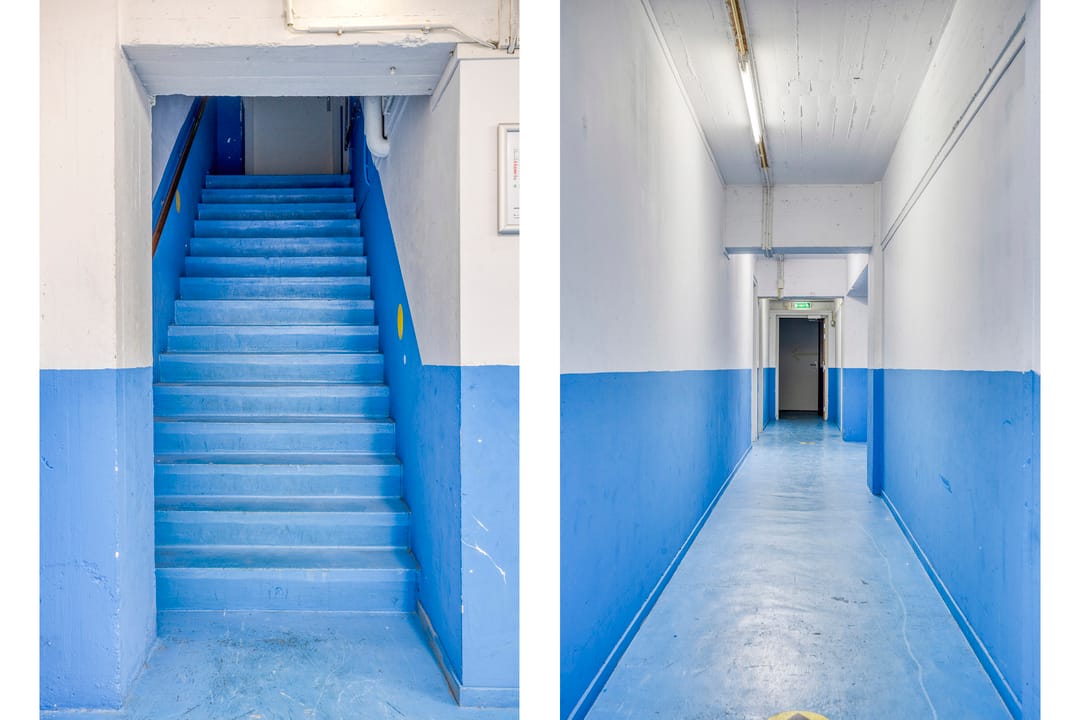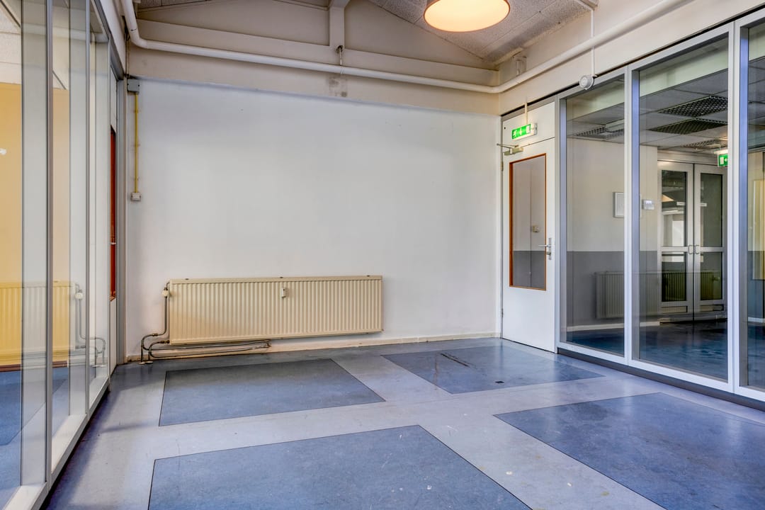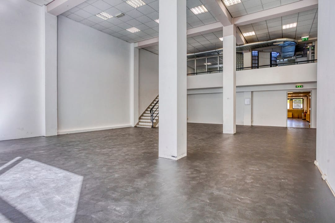 - Private entrance on the square on the Schiestraat. The first floor has a total of 258 m² and an impressive hall of approx. 150 m² with a ceiling height over 2 floors.