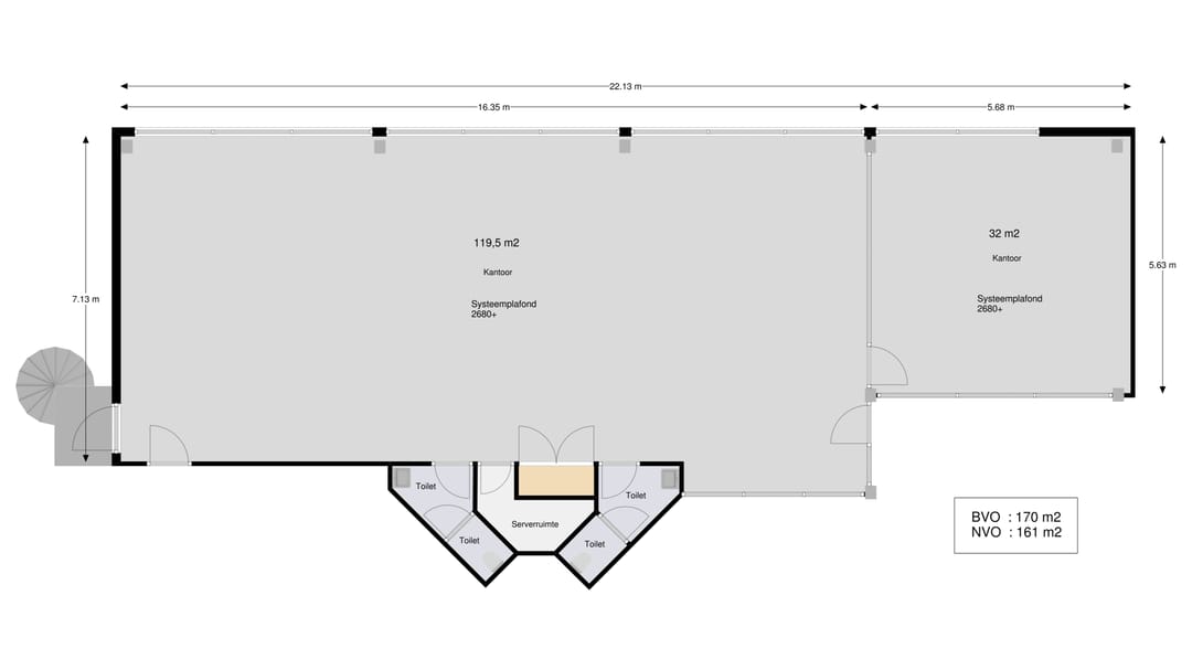 Kantoorruimte ca. 170 m2 vvo.