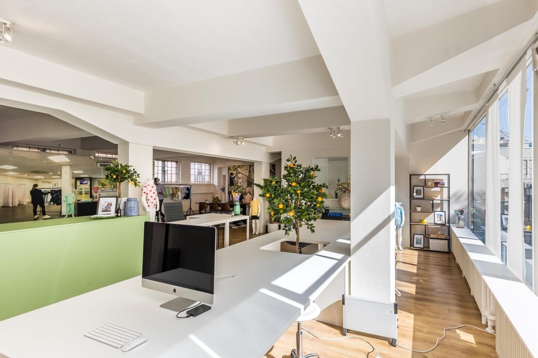 De ruimte is voorzien van grote ramen die zorgen voor een overvloed aan natuurlijk licht, wat een prettige werkomgeving creëert.
