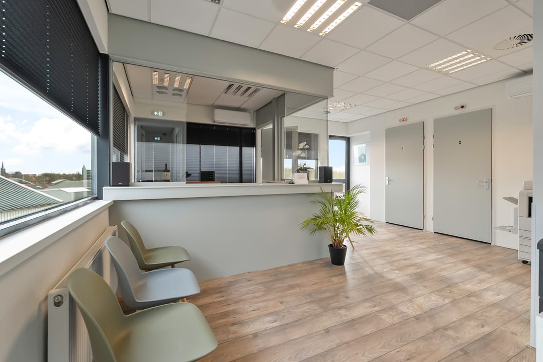 3 kantoorruimtes, 2 spreekkamers, receptie met wachtruimte