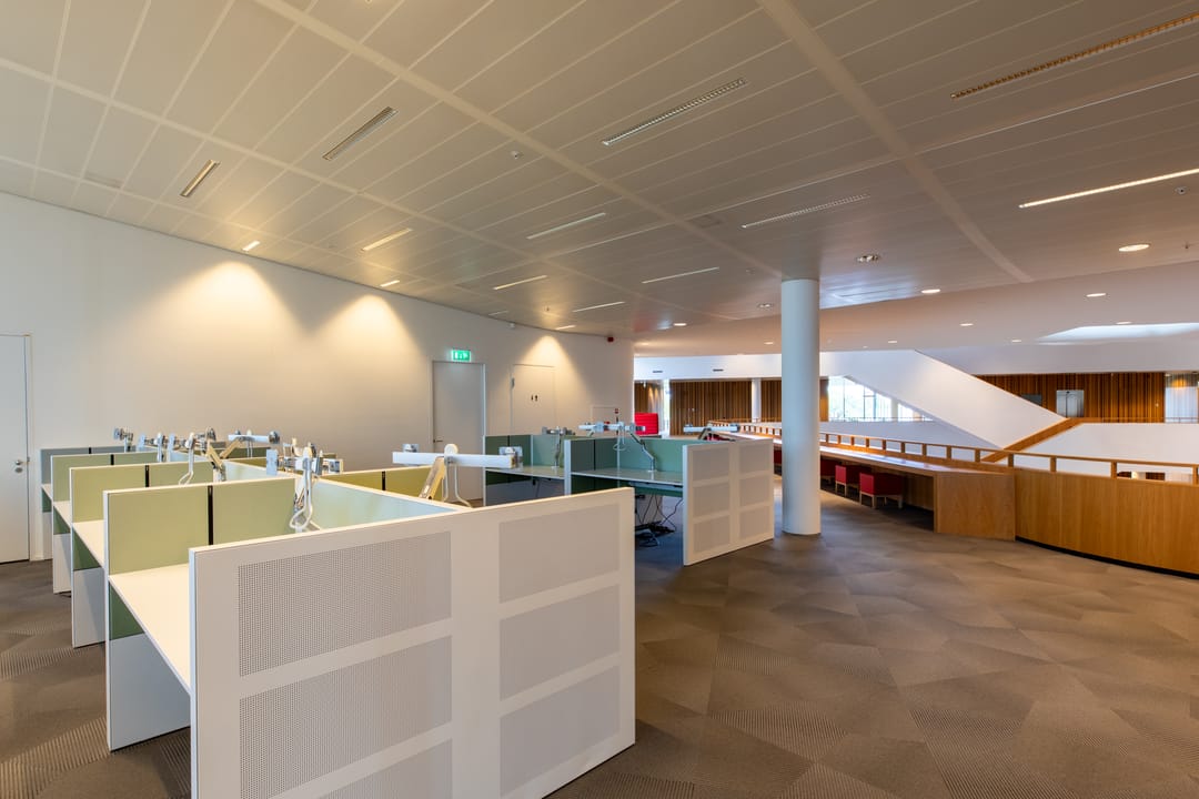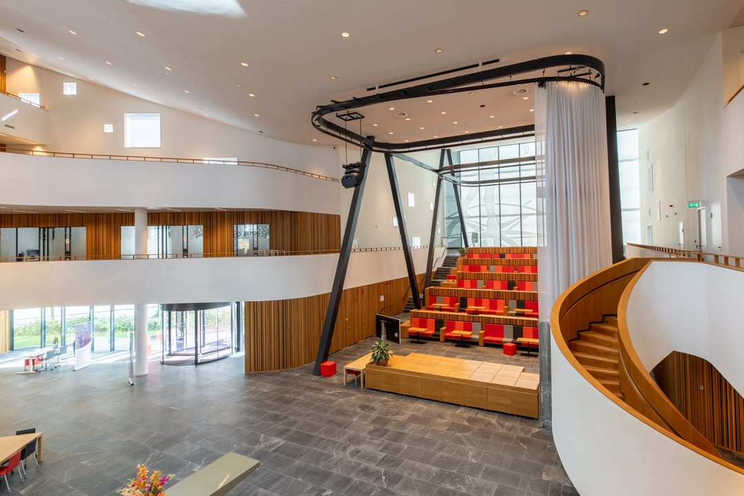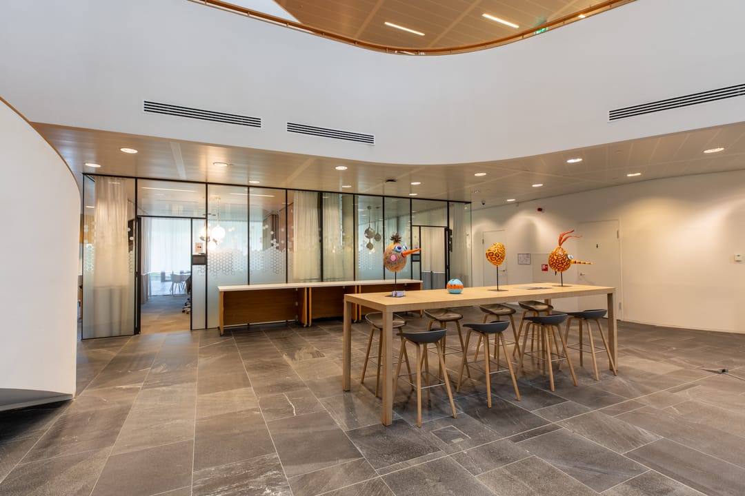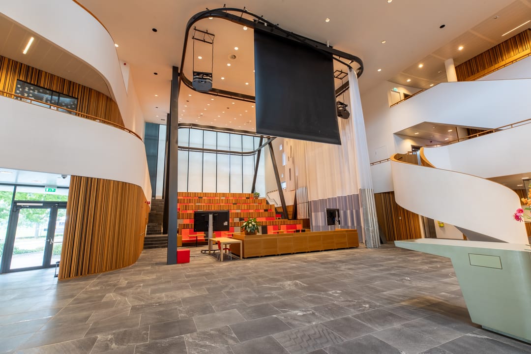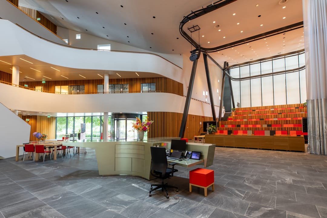 Het complex s gebouwd rondom een centraal atrium met veel lichtinval, waar ontmoeting centraal staat.
