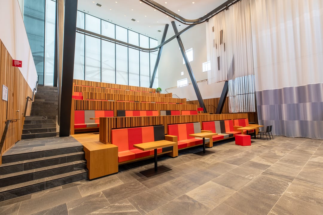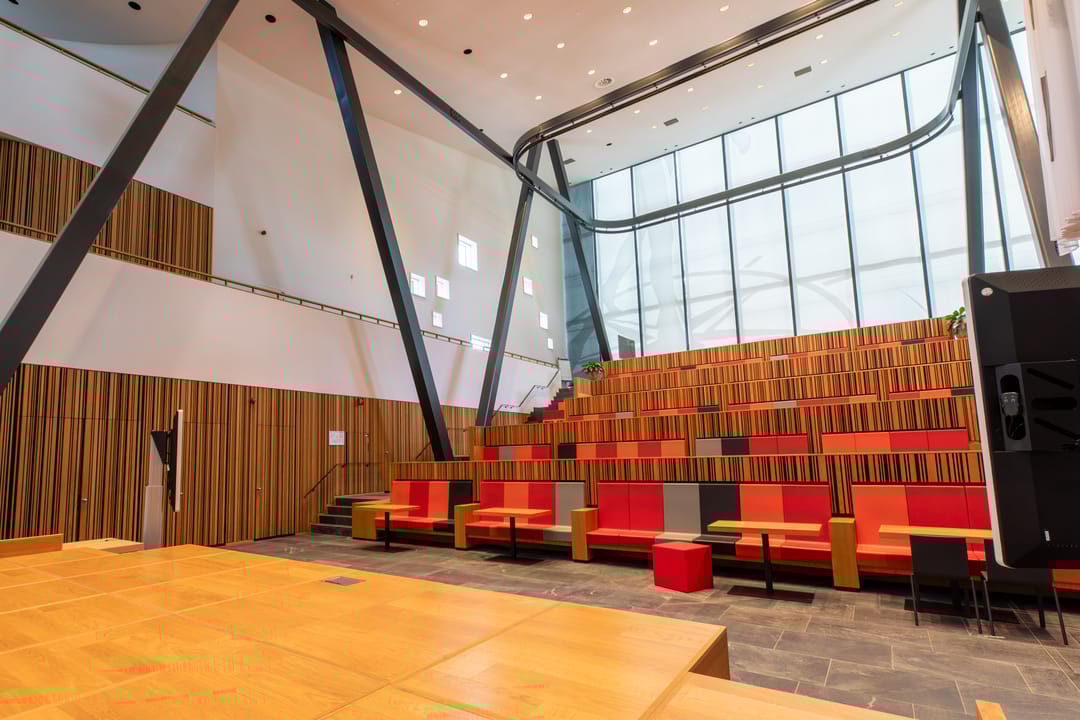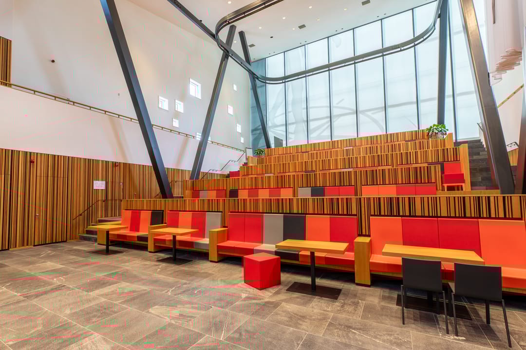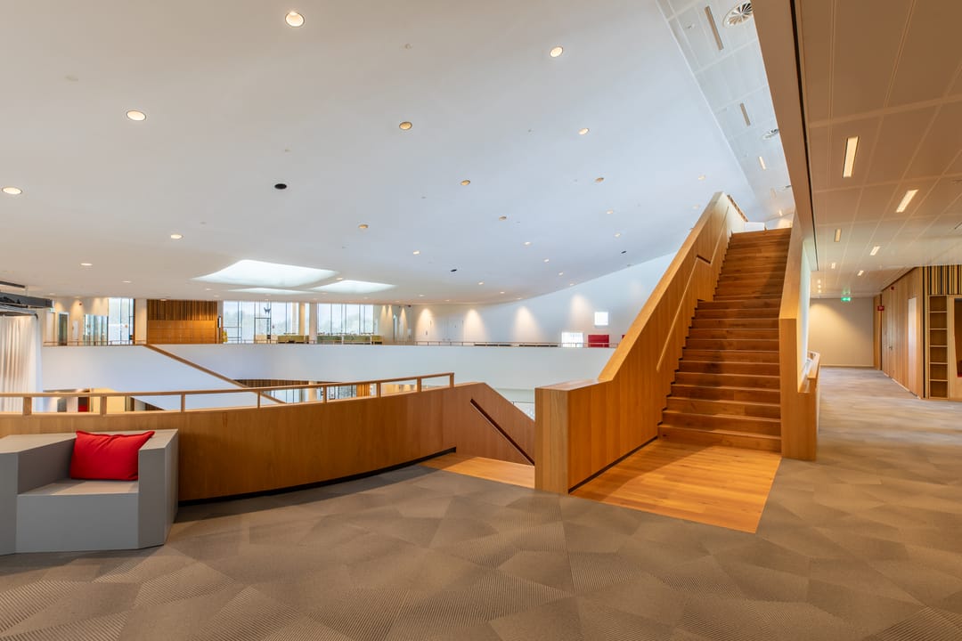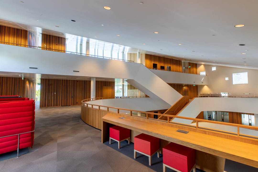 Het complex s gebouwd rondom een centraal atrium met veel lichtinval, waar ontmoeting centraal staat.