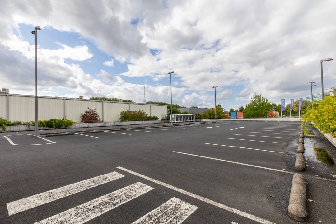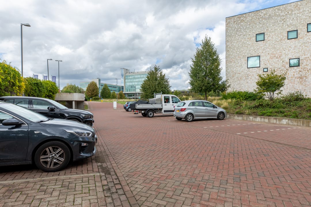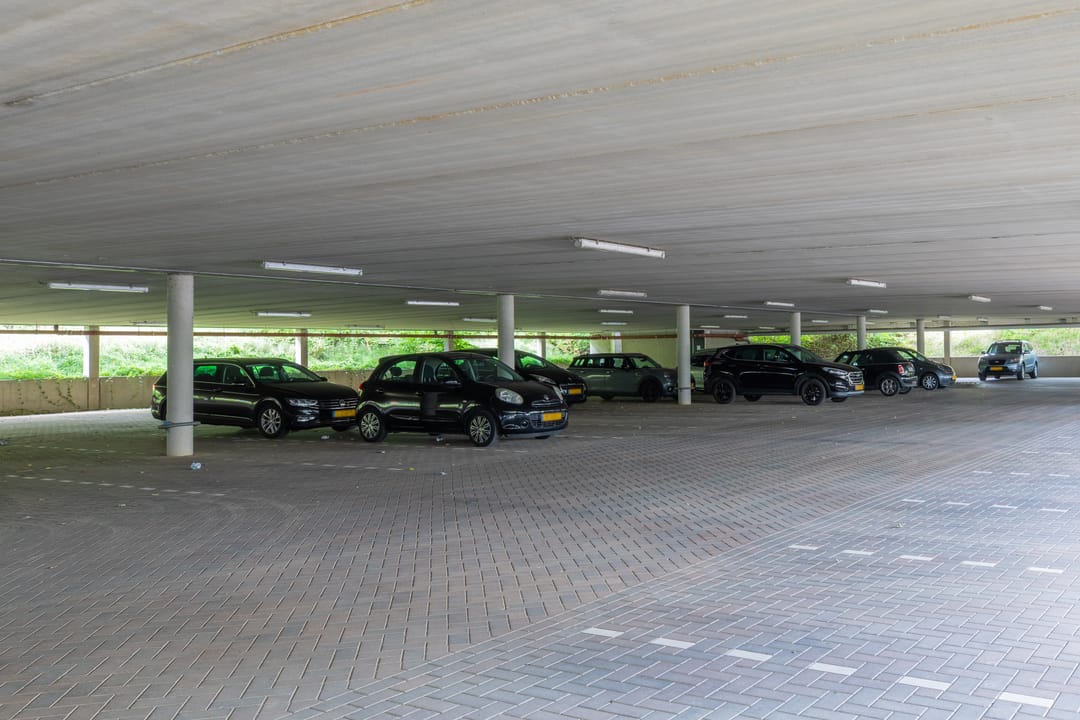 aan de achterzijde van het object liggen een 40-tal parkeerplaatsen, (waarvan 6 plaatsen bestemd voor electisch opladen) alsmede een 2-deks parkeergarage.