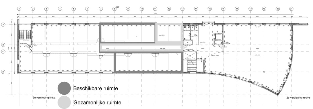 Vanuit de trapopgang of lift komt men bij de afsluitbare kantoorverdieping (ca. 924 m²) waarvan ca. 200 m² beschikbaar is. Deze vleugel wordt mede gehuurd door een accountantskantoor. De lunchruimte is in gezamenlijk gebruik en de kantoorruimte is gescheiden.