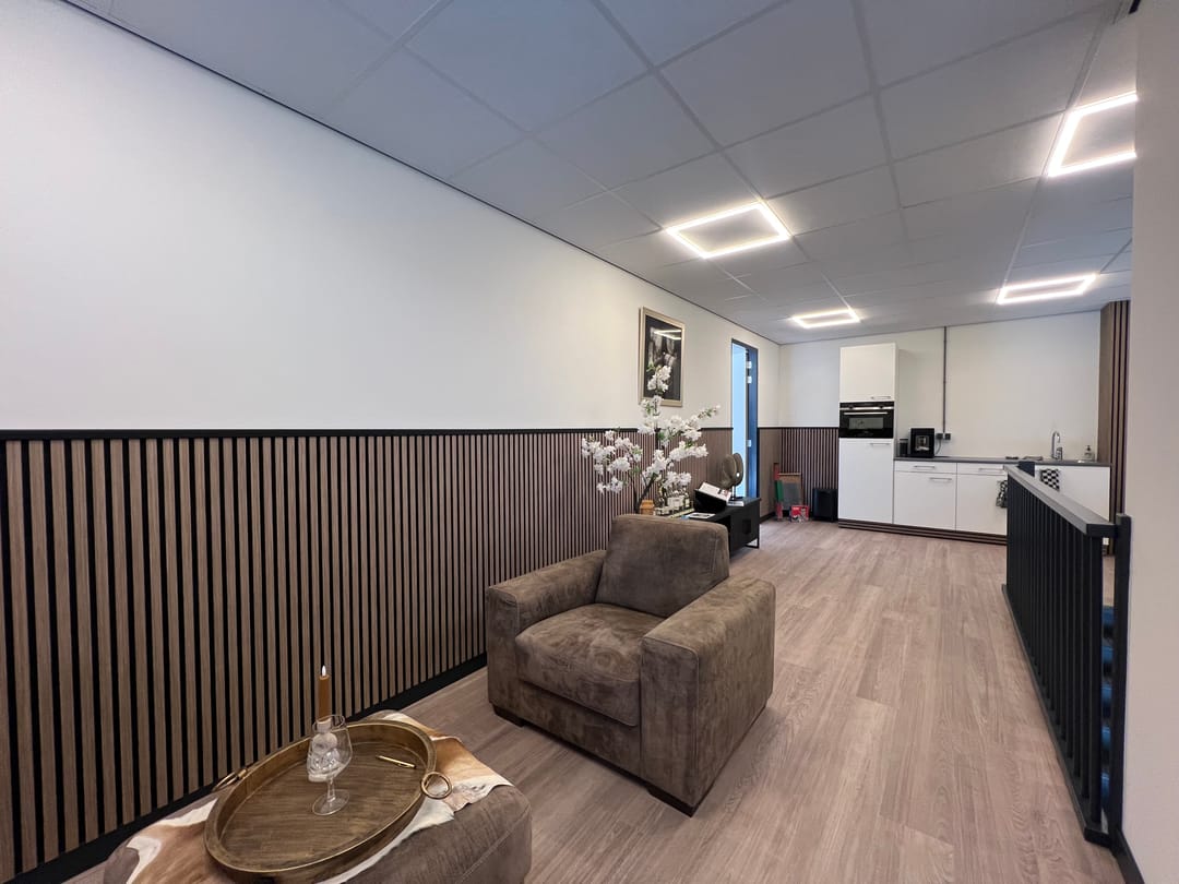 - systeemplafond met led-verlichting (3-traps dimbaar), vrije hoogte ca. 2,57 meter;