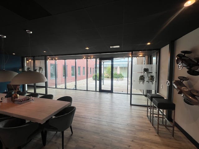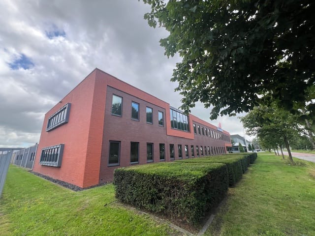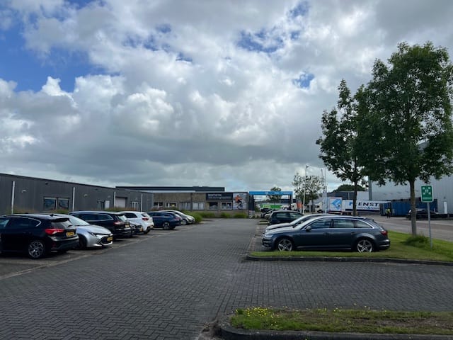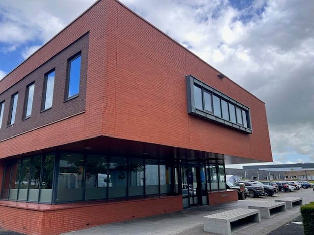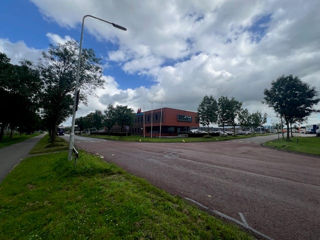 Het pand is gelegen op bedrijventerrein Houkesloot op zichtlocatie vanaf de snelweg A-7 - Stadsrondweg van Sneek.