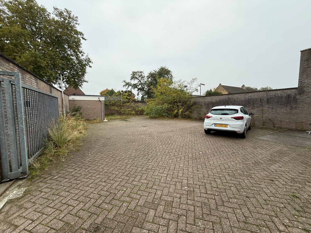 - Achter het gehuurde is een eigen afgesloten parkeerterrein, de huurprijs bedraagt € 175,- per maand excl. BTW per parkeerplaats.