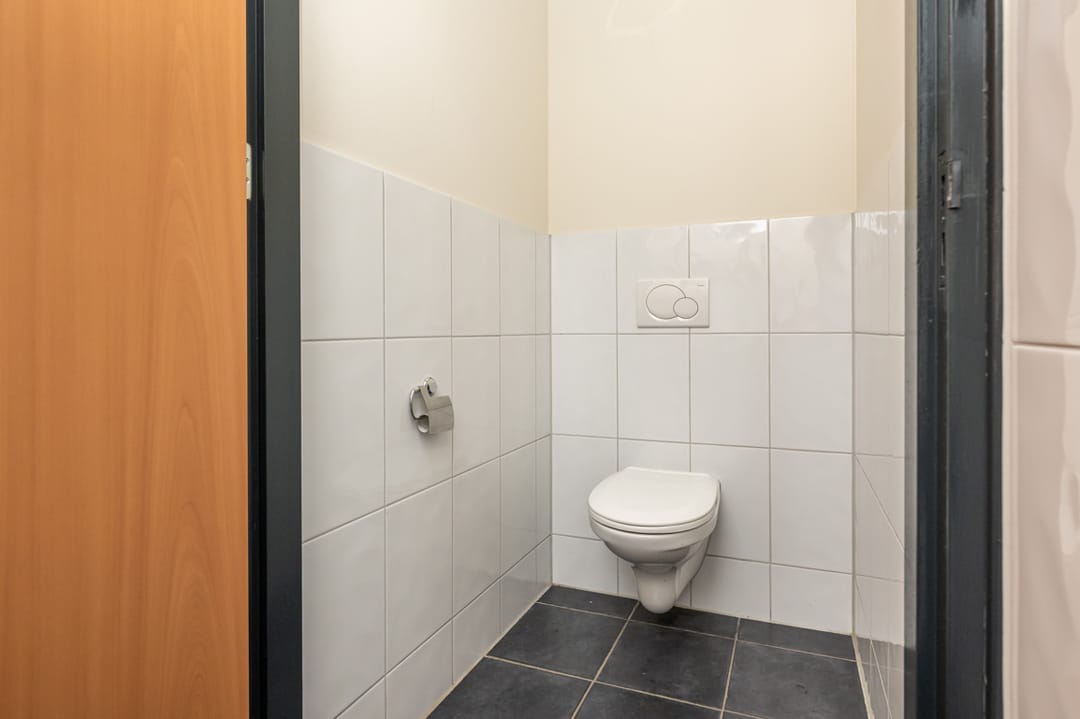 - Vide met toegang naar kantoor en betegelde toiletruimte met fonteintje