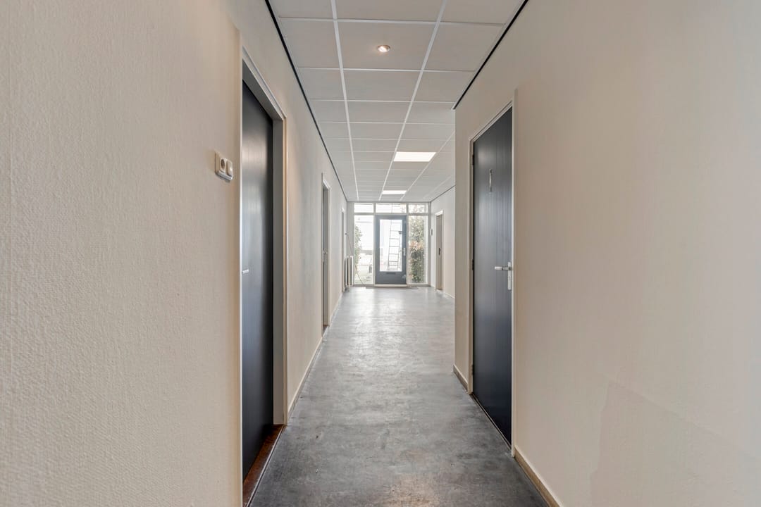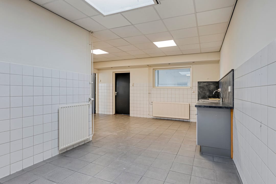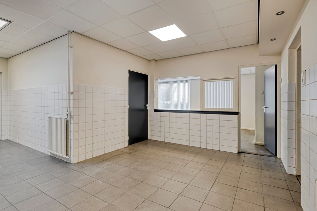 Via de schuifdeur bereikt u tevens een aangrenzende bedrijfsruimte van ca. 10 meter diep, met een plafondhoogte van ca. 2,75 meter. Deze extra ruimte biedt volop mogelijkheden voor opslag, werkplaats of ondersteunende bedrijfsprocessen.