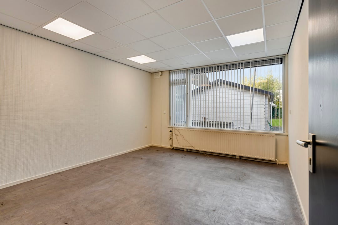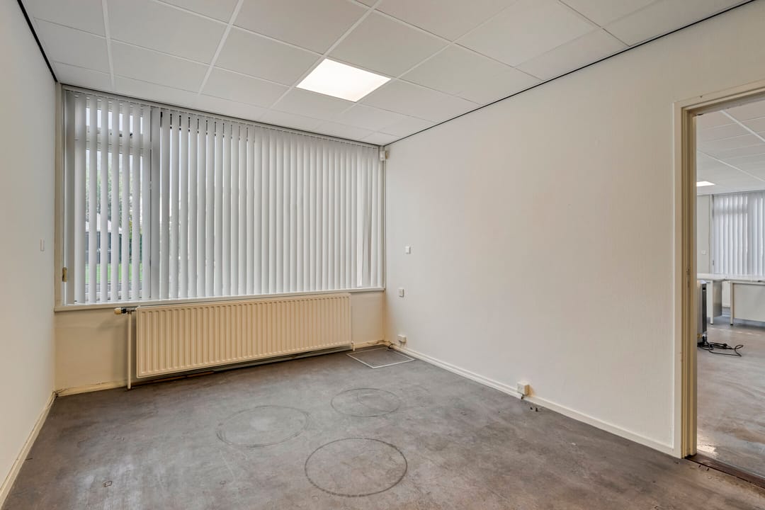 De kantoorruimten hebben een prettig formaat en zijn functioneel ingericht met onder andere een systeemplafond met geïntegreerde verlichting, kabelgoten en meerdere raampartijen die zorgen voor een lichte, comfortabele werkomgeving.