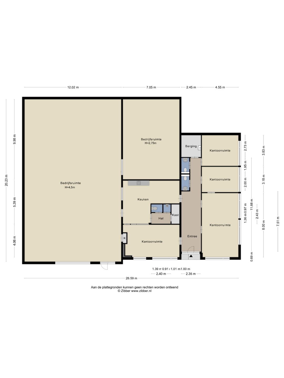 - Plafond nokhoogte loods ca. 7.80, hoogte onder de balk ca. 4.51 meter;