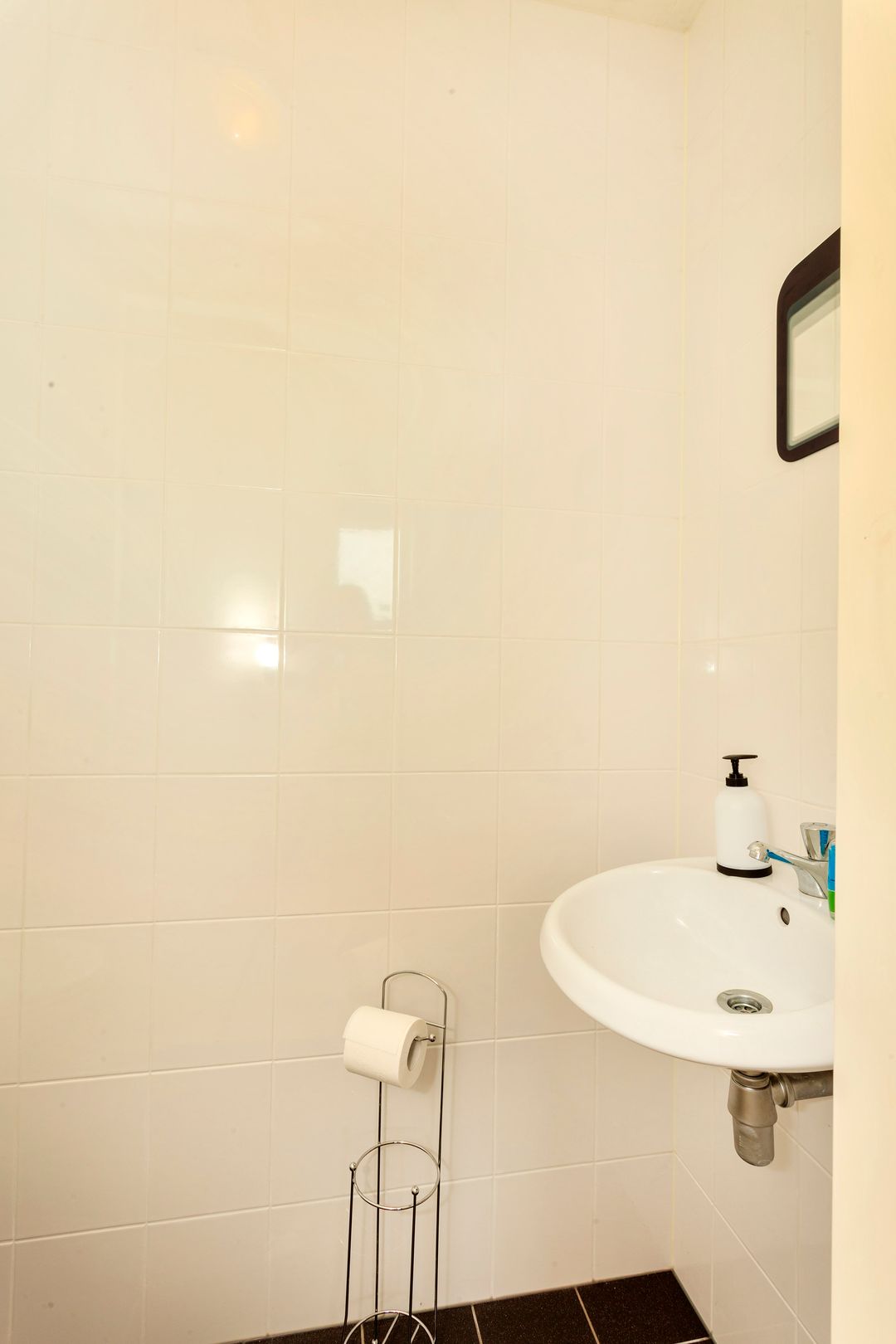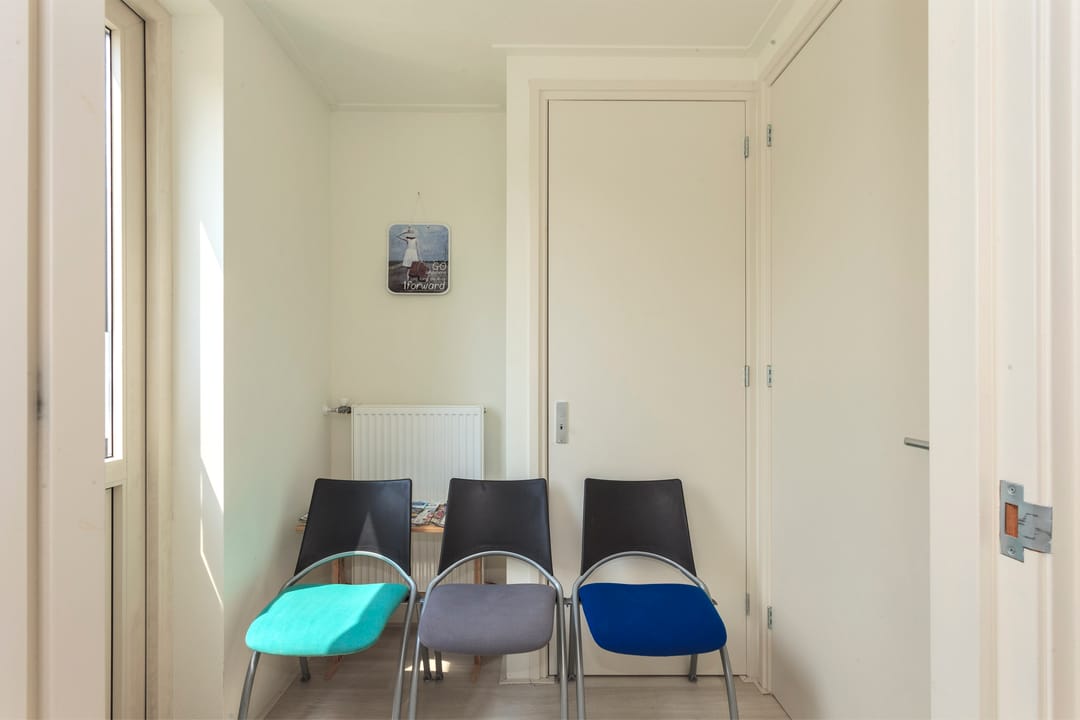 Indeling: entree/hal, toilet met fonteintje en een kantoorruimte met pantry (keukenblok met spoelbak).
