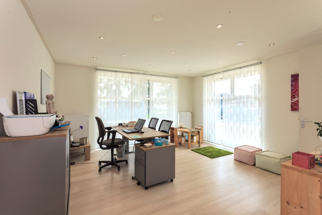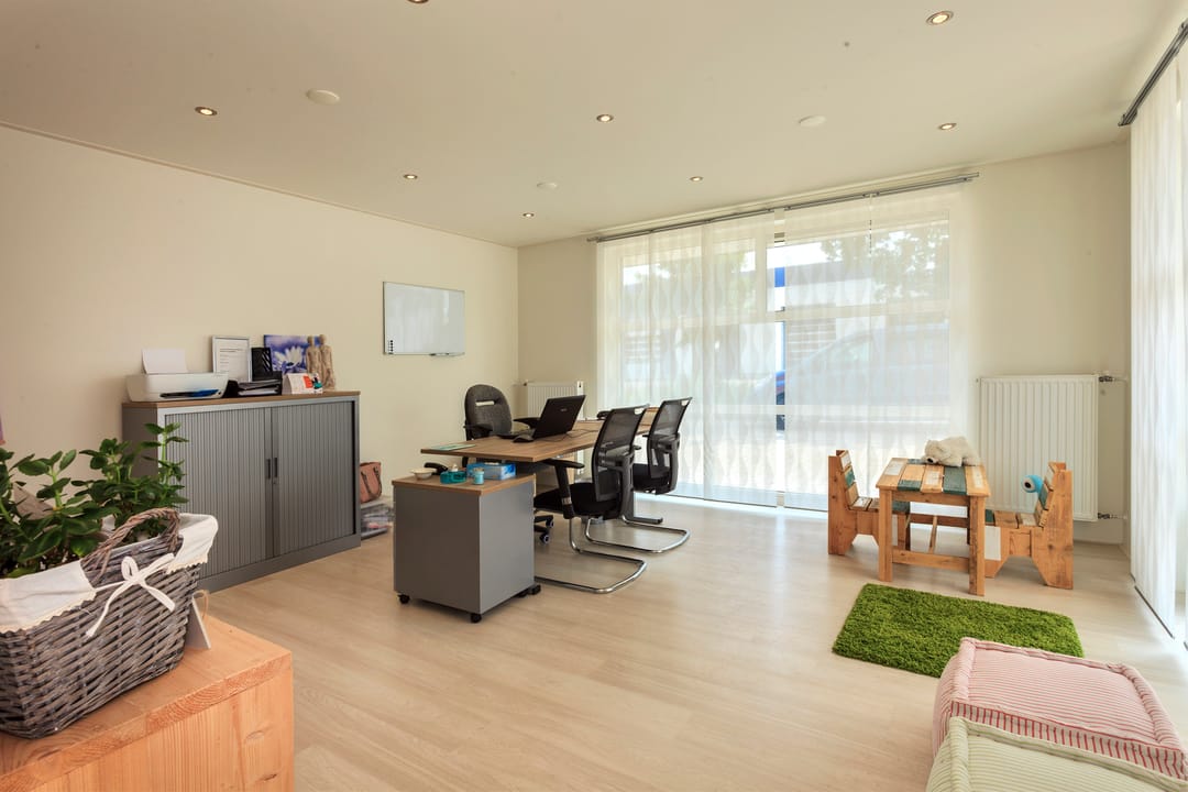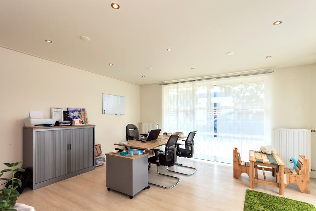 De moderne kantoorruimte heeft een totale oppervlakte van circa 35m² en beschikt over een eigen entree, toilet en pantry. Het kantoor is direct gebruiksklaar en voorzien van brede raampartijen, centrale verwarming, nutsvoorzieningen en een nette afwerking van wanden en plafond. In het plafond is de verlichting al geïntegreerd. Daarnaast is er een aansluiting op het snelle glasvezelnetwerk aanwezig.