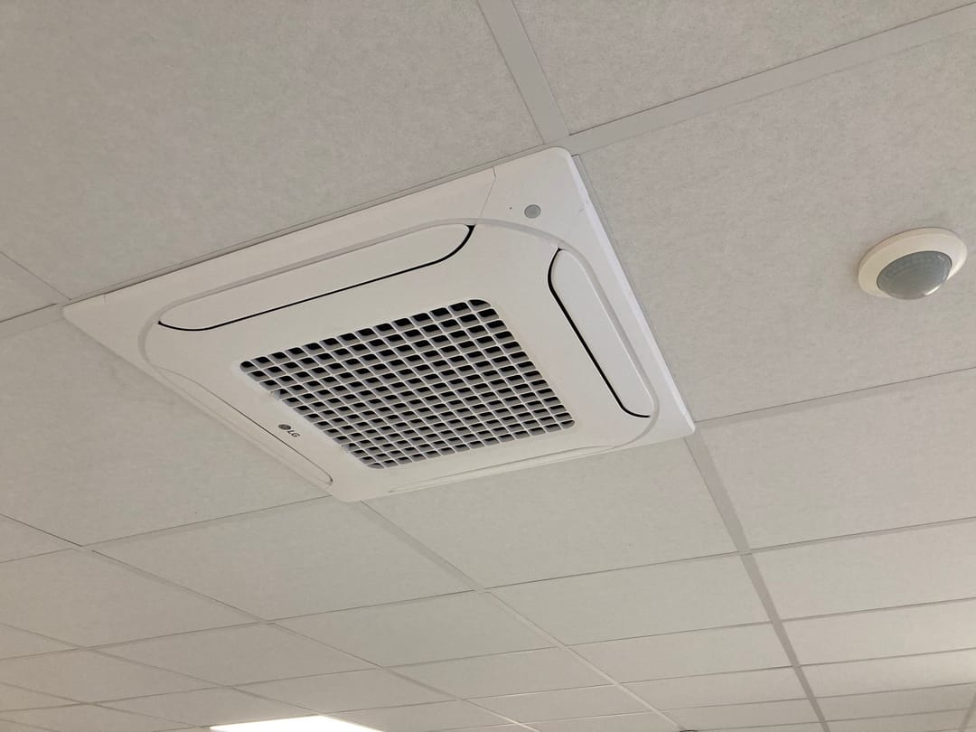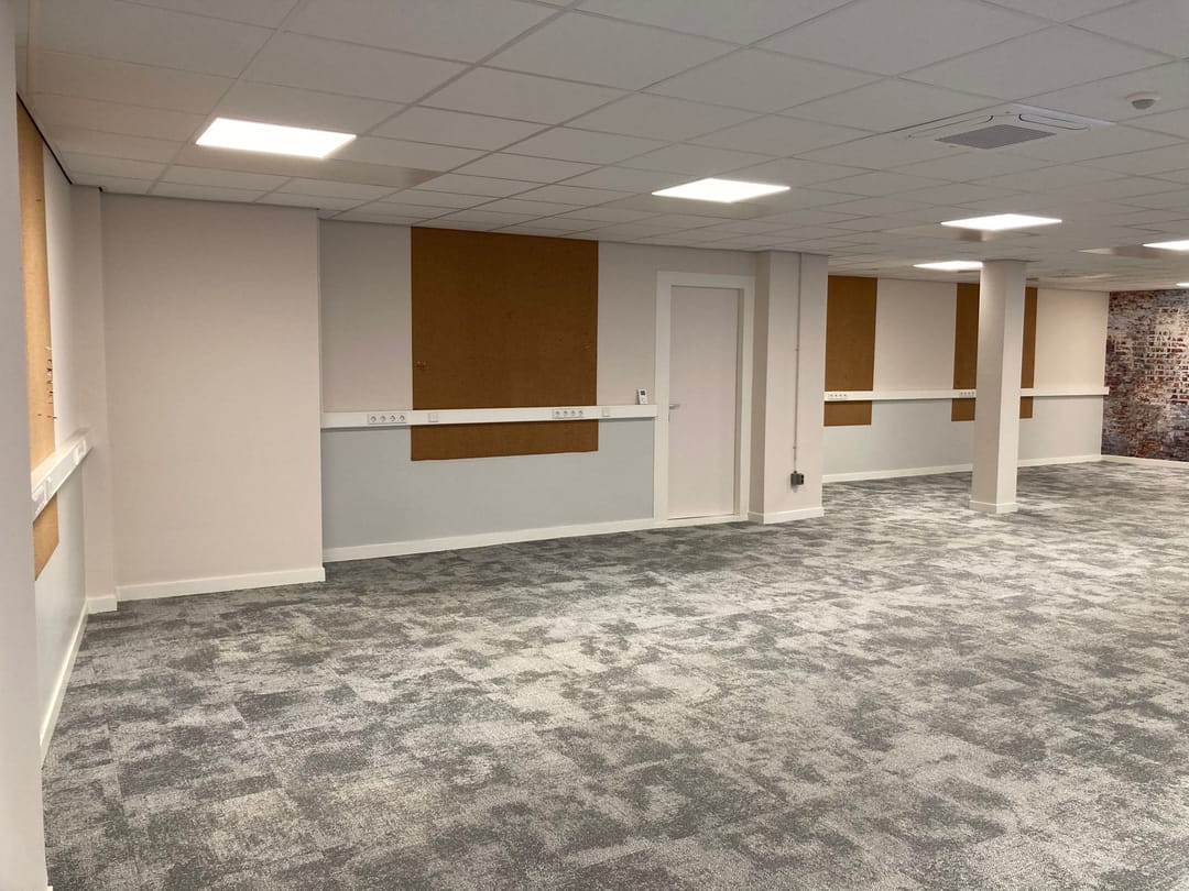 Tevens in de zomer een fijne werkplek door aanwezigheid van 3 airco's in het plafond verwerkt. Energielabel A++.