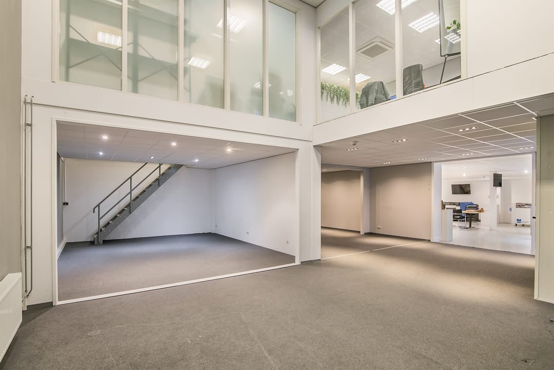- Eerste verdieping: Een royale kantoorruimte perfect voor vergaderingen, werkplekken of als opslagruimte daarnaast is er nog een opslagruimte aanwezig.
