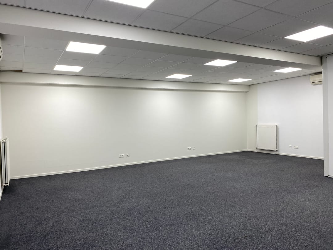 Vanuir de hal toegang tot de open kantoorruimte. Vanuit deze ruimte toegang tot twee kantoorkamers.