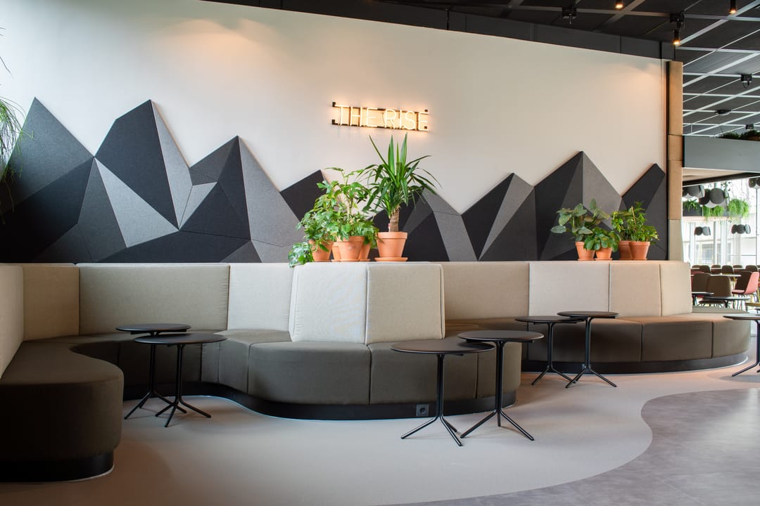 Dit voormalig Interpolis kantoor heeft terrastuinen met ochtend- en middagzon. The Rise is voorzien van een grote gym met luxe kleedkamers en fitness apparatuur. De vergaderzalen zijn geschikt om informeel te zitten met kleine gezelschappen tot lezingen voor 70 personen en meer.
