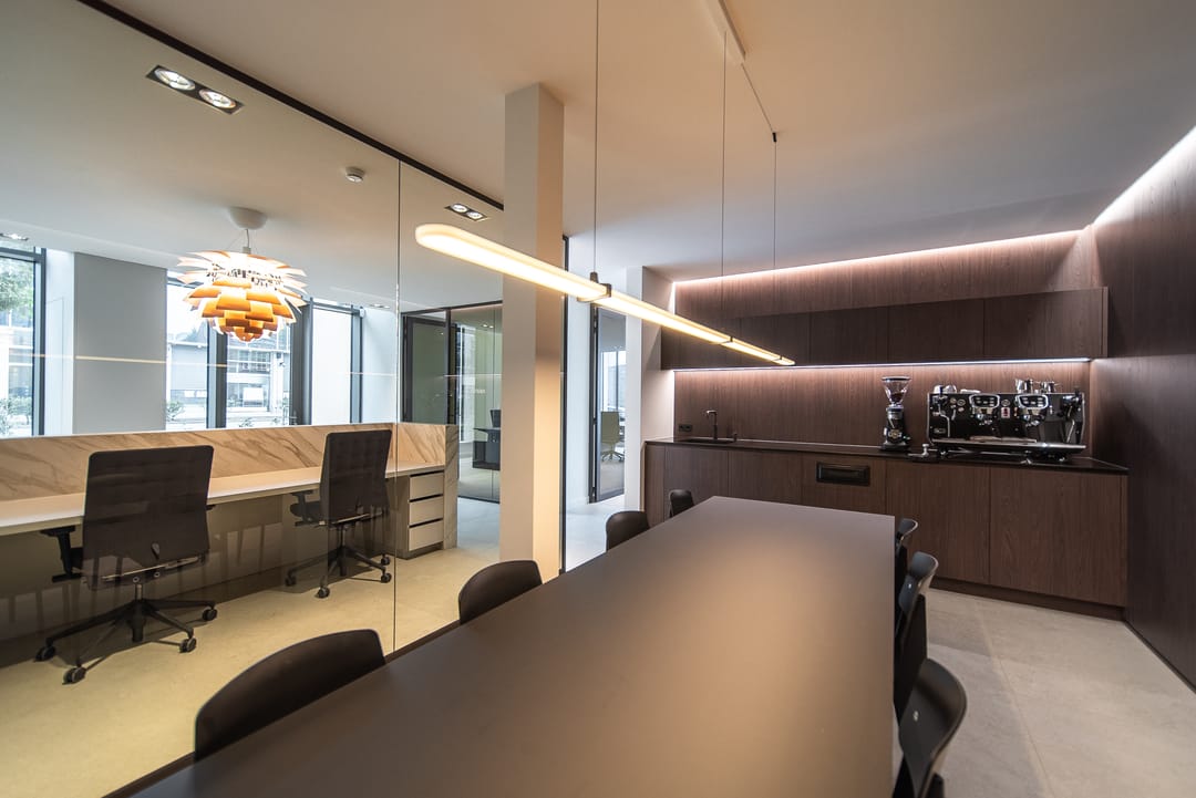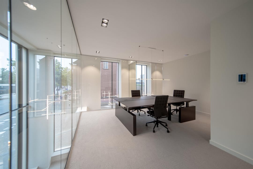 Kantoor De Bankier heeft een hoogwaardig, turn-key opleveringsniveau en straalt veel luxe uit. Het gebouw is voorzien van een duurzame klimaatinstallatie, een data installatie met glasvezelverbinding en alle werkplekken en kantoorkamers zijn volledig ingericht met luxe Vitra meubilair. U hoeft alleen uw beeldscherm of laptop mee te nemen en kunt meteen aan de slag. Ook de gemeenschappelijke faciliteiten zijn voorzien van het beste apparatuur, prachtige verlichtingsarmaturen, luxe meubilair en hoogwaardig sanitair.