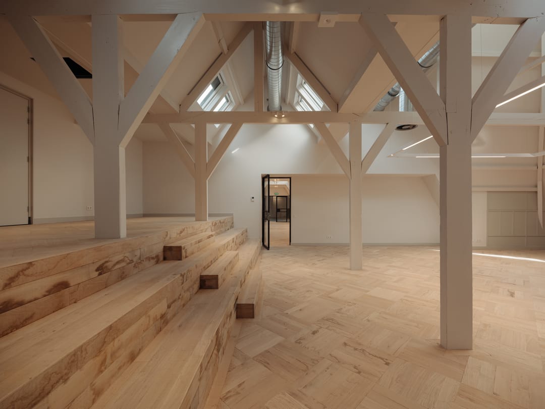 De hoogwaardige afwerking, ontworpen door Heyligers Architects en Nicemakers, in combinatie met duurzame technologieën maakt het Muntgebouw compleet. Onder één dak komen werken, ontspannen en ontmoeten samen.