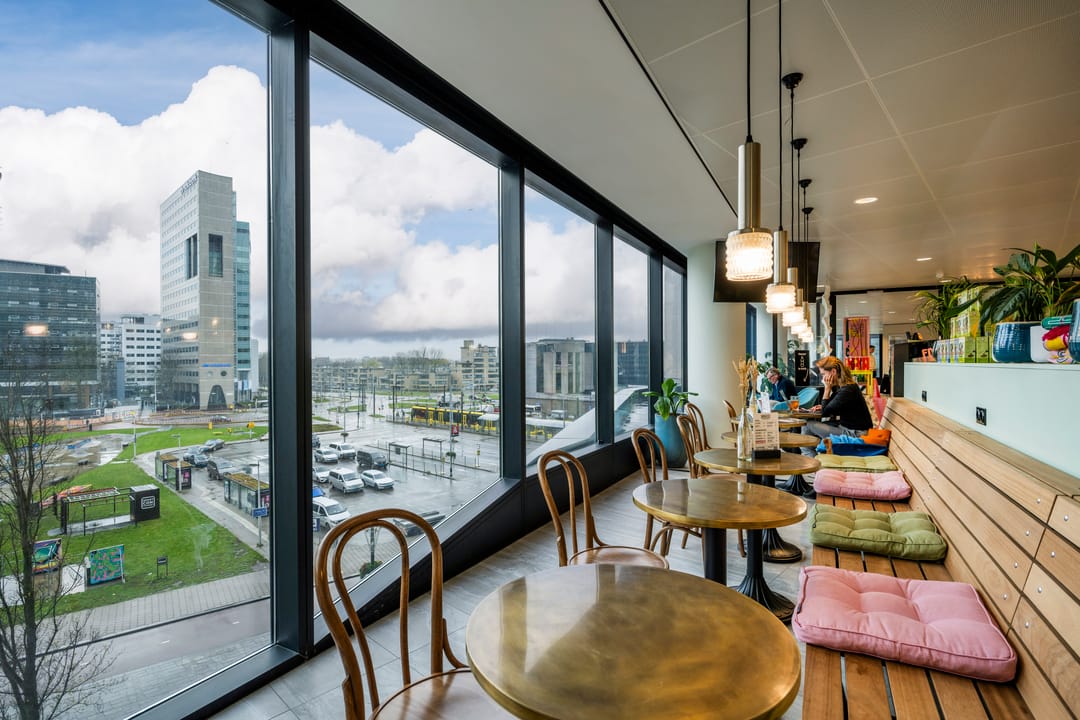 Middels een trap vanaf de centrale entree (of lift) bereikt u de bar op de 3e verdieping. Hier kunt u ’s-ochtends onderweg naar uw etage een koffie en croissant halen en aan het eind van de dag een borrel drinken met collega’s. De bar en het bedrijfsrestaurant worden geëxploiteerd door Vermaat. Vermaat is een toonaangevende horecaspeler die garant staat voor een productaanbod van uitstekende prijs/kwaliteitverhouding.