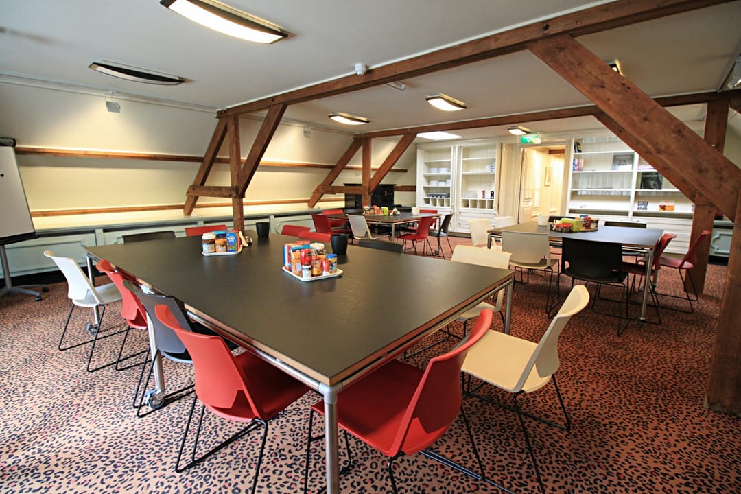 Op de derde verdieping bevindt zich een vergaderkamer voor gemeenschappelijk gebruik en een grote presentatie/lunchruimte.