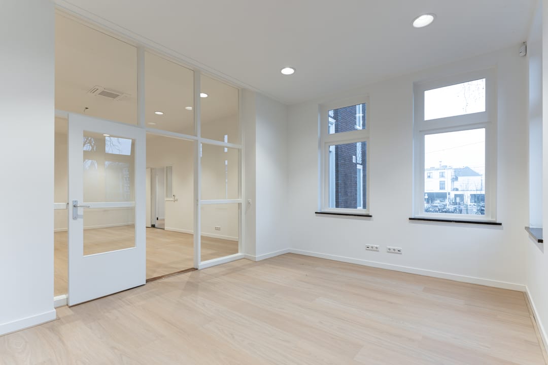 Biltstraat 182 voelt vanaf het eerste moment als een pand met verhaal. Een monumentaal gebouw op een markante hoek, met hoge ramen, royale plafondhoogte en een entree die direct professioneel en verzorgd aanvoelt. Binnen is het karakter behouden, maar het comfort is van nu. Veel daglicht, strak afgewerkte ruimtes en een fijne klimaatbeheersing zorgen voor een werkomgeving die zowel representatief als praktisch is.