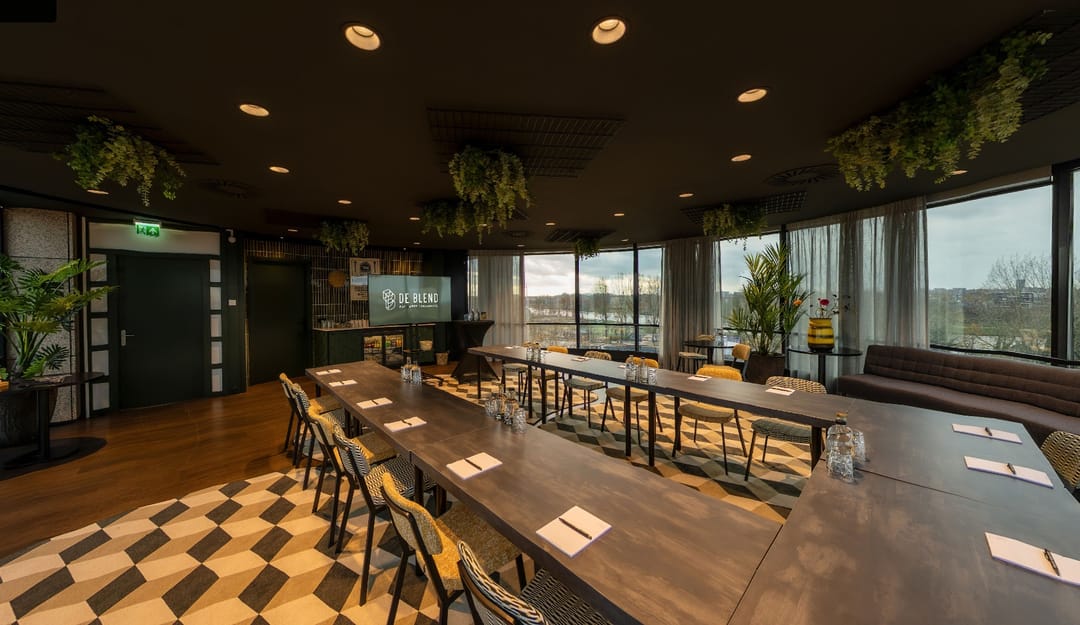 Het voormalige hoofdkantoor van Douwe Egberts, heeft na een uitgebreide renovatie de naam “De Blend” gekregen. Deze naam verwijst niet alleen naar de rijke koffiehistorie, maar staat ook symbool voor de verscheidenheid aan huidige invullingen en kantoorgebruikers. In gebouw De Blend zijn onder meer gevestigd Bar Brasserie De Blend, Short stay Hotel 2L De Blend, diverse vergaderfaciliteiten, kantoorruimten van verschillende afmetingen en Improving You Personal Gym gevestigd. Kortom, De Blend heeft het allemaal!
