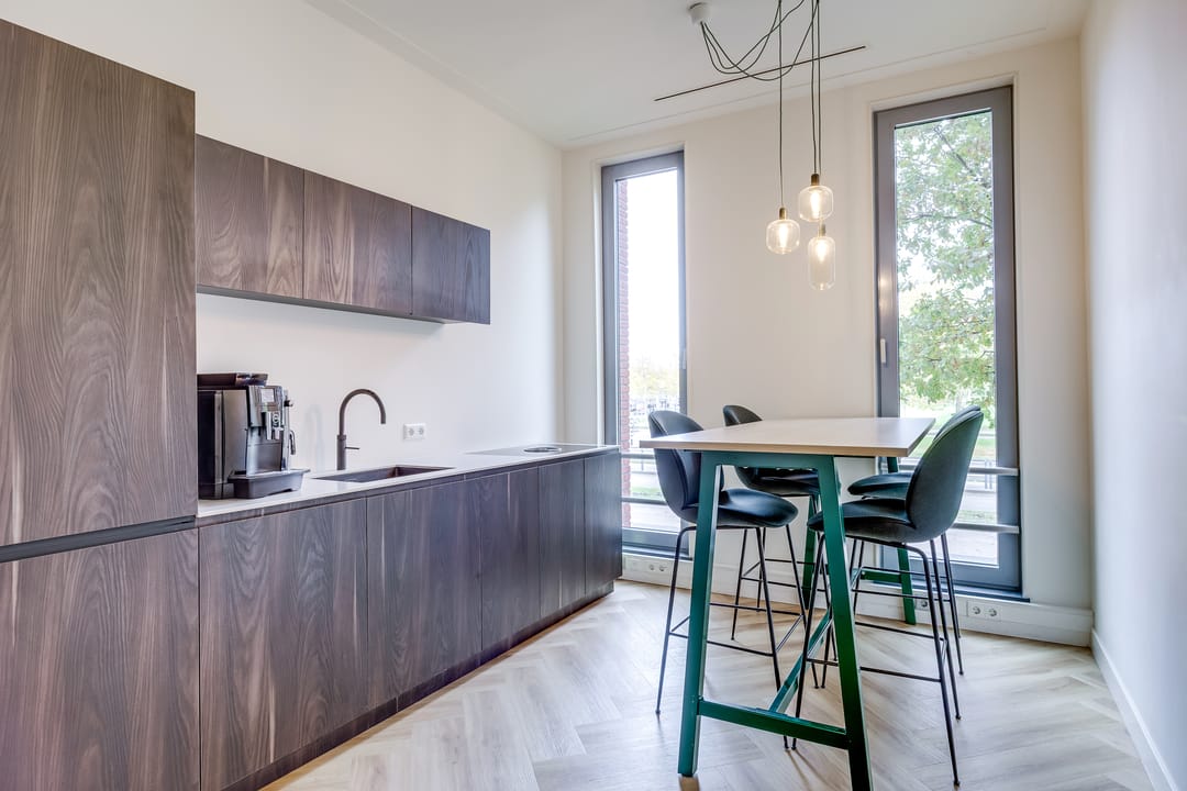 - luxe volledig ingerichte keuken voorzien van een keramiek blad met onder- en boven kastjes, koel- vriescombinatie, vaatwasser, elektrische kookplaat en een combimagnetron;