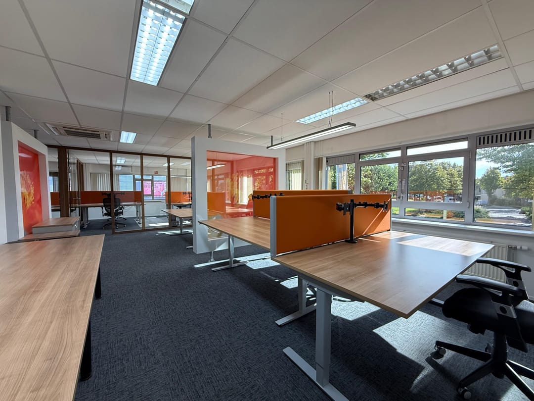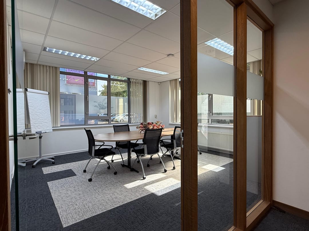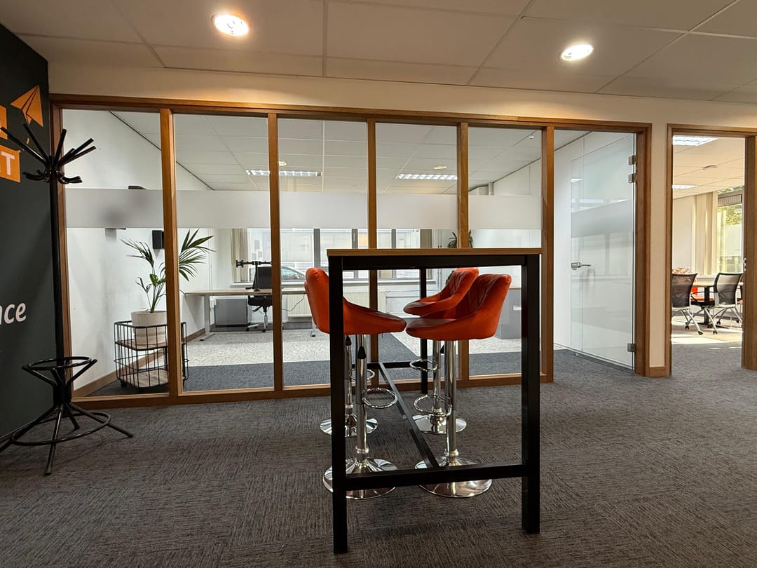 Op de eerste verdieping vindt u een overloop met toegang tot een toiletruimte, een magazijn waarin de CV-ketel en de mechanische ventilatiebox zijn opgesteld, drie afgesloten kantoorruimtes die samen plaats bieden aan circa acht werkplekken en een ruime open kantoorruimte met ruimte voor nog eens zes werkplekken. Ook hier zijn twee airco-units aanwezig en zijn de ramen voorzien van screens, wat bijdraagt aan zowel comfort als energiebesparing.