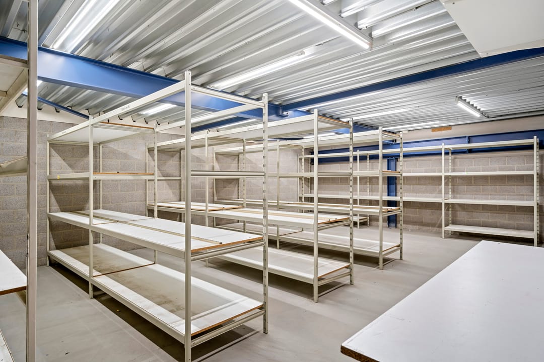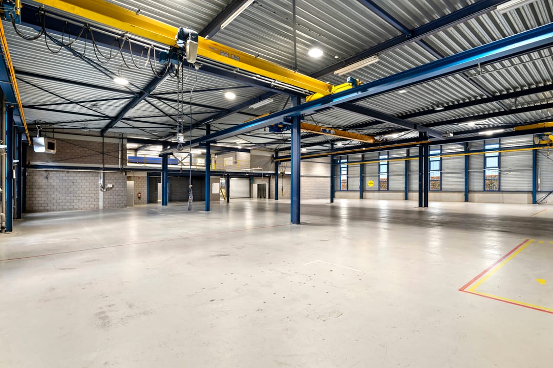 De bedrijfsruimte beschikt op het hoogste punt over een vrije hoogte van maar liefst circa 6 meter en 6 overheaddeuren. De overheaddeuren zijn aan de zij- en achterkant gesitueerd wat zorgt voor een optimaal gebruik van de ruimte. Op zowel de begane grond als vide zijn diverse opslag- en overige ruimten gelegen wat dit pand van alle gemakken voorziet. De bedrijfsruimte beschikt over een stroomcapaciteit van maar liefst 3x 160 ampère en een kraanbaan.
