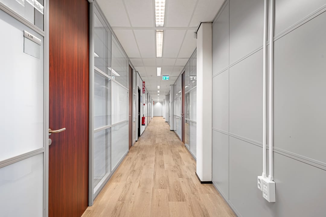 De totale verhuurbare vloeroppervlakte op de eerste verdieping varieert van circa 22 m² tot en met 84 m². De kantoorkamers worden verhuurd inclusief 1 parkeerplaats.