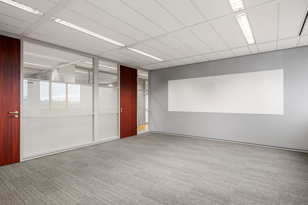 • aanwezige luxe scheidingswanden met glas en plafondhoge deuren;
