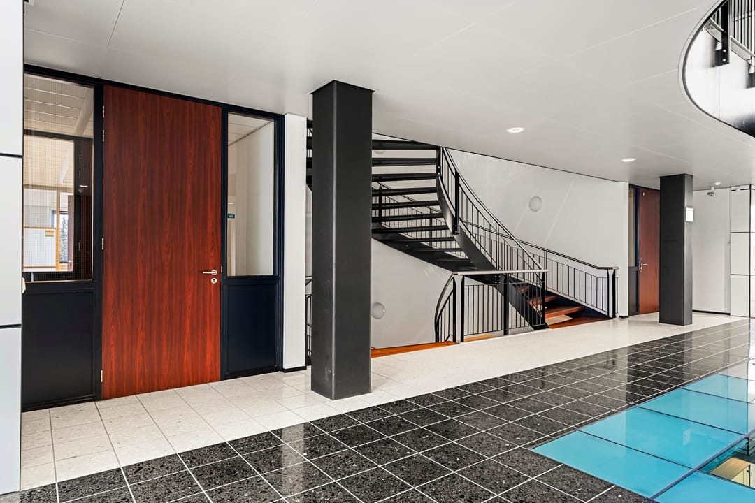 - Mechanical ventilation, built-in fittings, elevators, windows can be opened, cable ducts, modular ceiling, toilet, pantry, heating and room layout