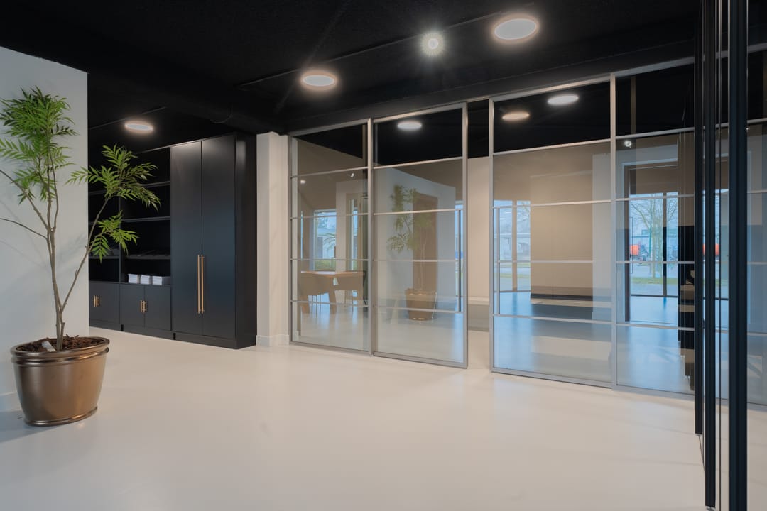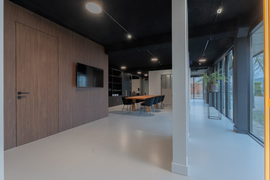 De ruimte heeft veel daglichttoetreding en is echt een visitekaartje voor uw onderneming.