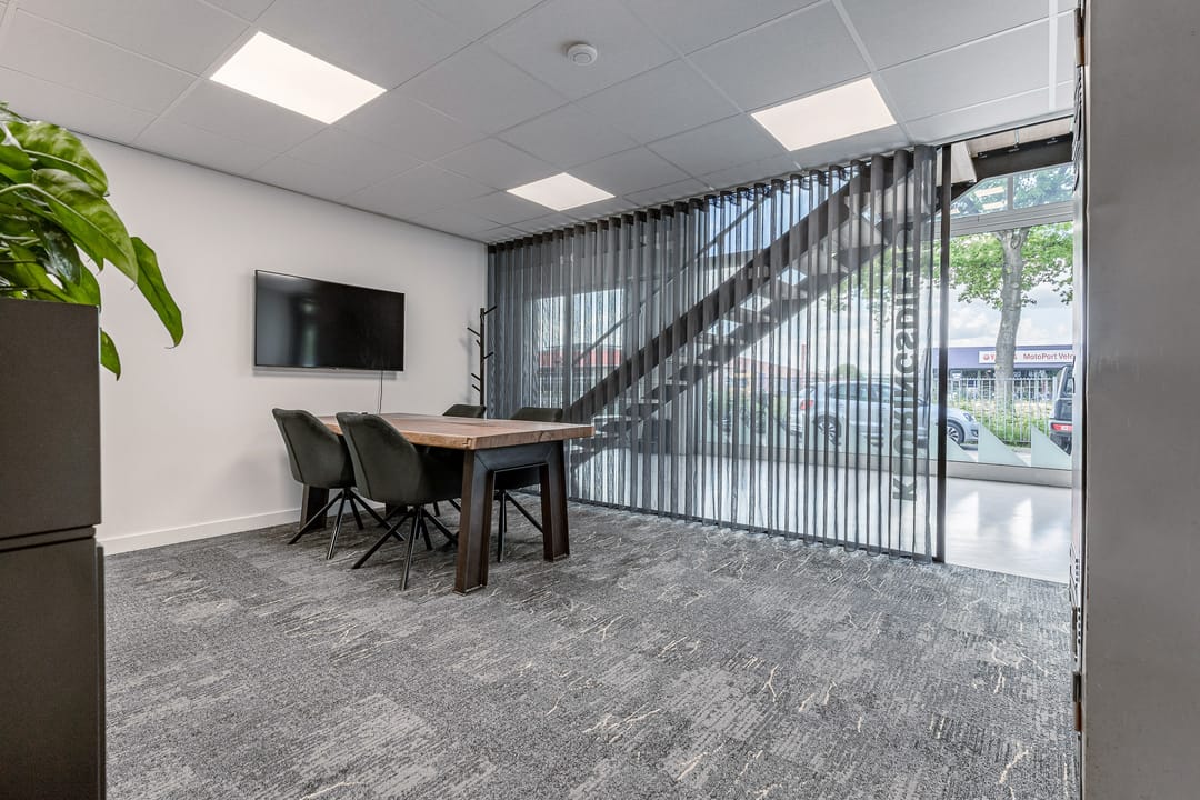 Een bedrijfsruimte hoogwaardig en volledig ingericht door de Vloerenbaas. Aan de voorzijde is er een centrale entree met een receptie. De kantoren liggen ook aan de voorzijde en hebben uitzicht op de Run. Er zijn in dit pand meer dan voldoende gezamenlijke voorzieningen. Op de eerste verdieping bevinden zich spreekkamers, een kantine en op de begane grond een pantry en toiletten. ,