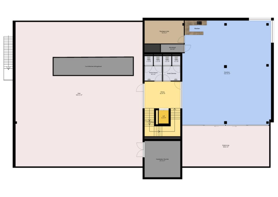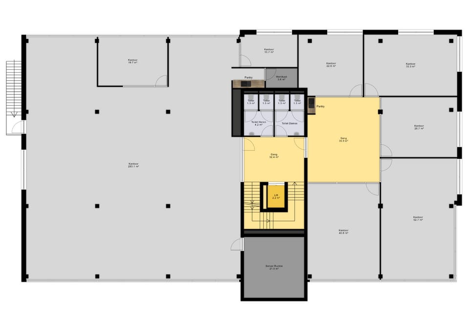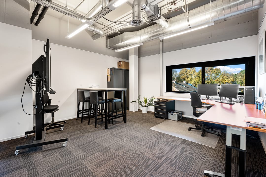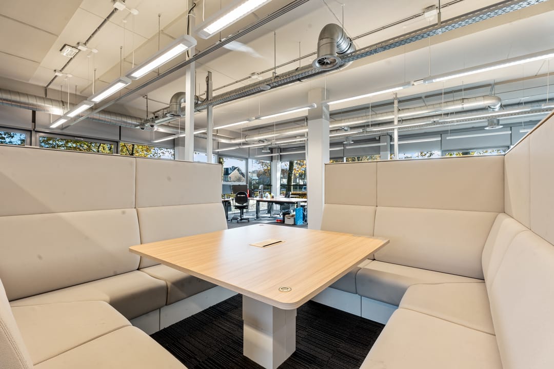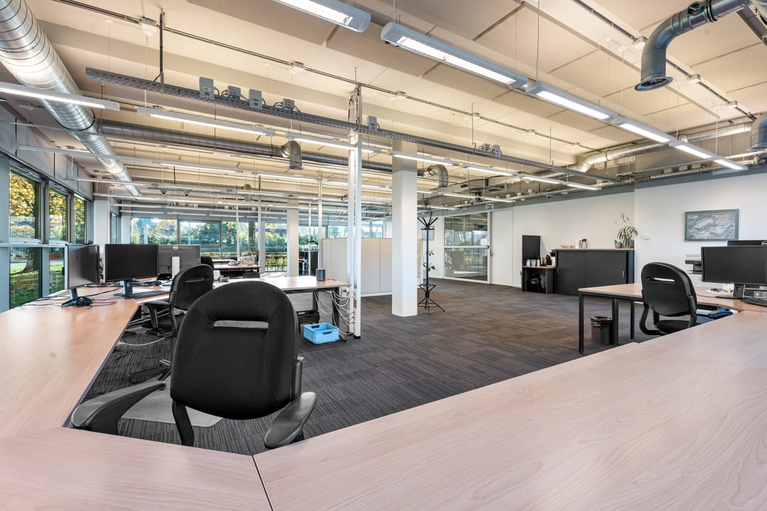 Het gebouw heeft een industriële, representatieve uitstraling met een heldere, logische indeling. Grote raampartijen zorgen voor veel natuurlijk licht in de kantoorruimtes, wat een prettige werkomgeving creëert. De vloeren zijn flexibel in te delen, geschikt voor verschillende werkvormen – van open kantoortuinen tot aparte vergader- en spreekkamers.