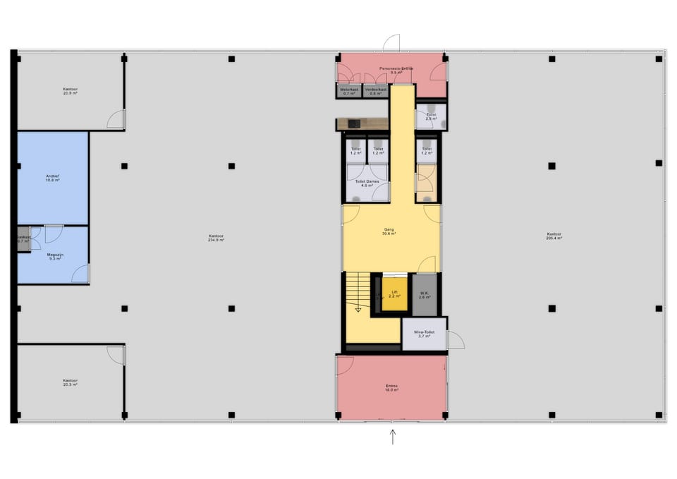 Het kantoorpand is hoogwaardig afgewerkt en heeft een totaal verhuurbaar oppervlak van circa 1.391 m² kantoorruimte, wat als volgt is verdeeld: