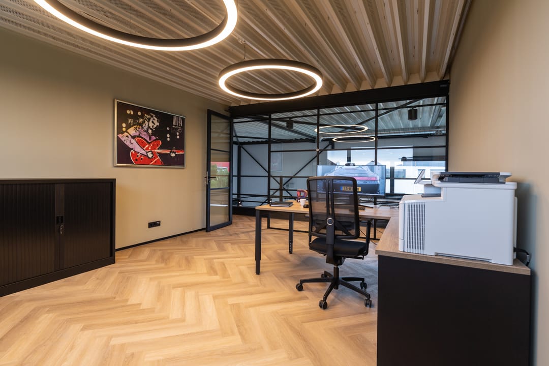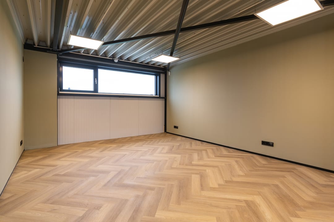 Moderne kantoorruimte te huur van bijna 25m2 met visgraat pvc vloer. Gelegen op de eerste verdieping in een gloednieuwe en bijna energieneutraal bedrijfsgebouw.
