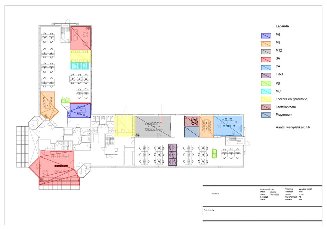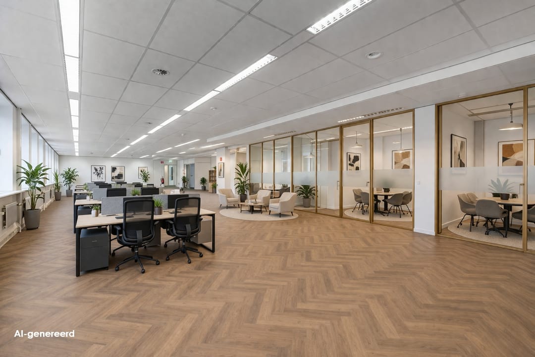 - deels open kantoortuinen, deels huidige indeling* met scheidingwanden;
