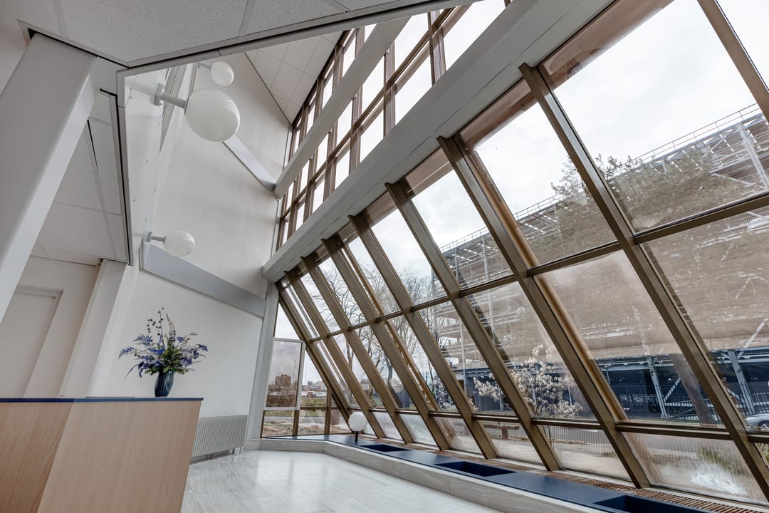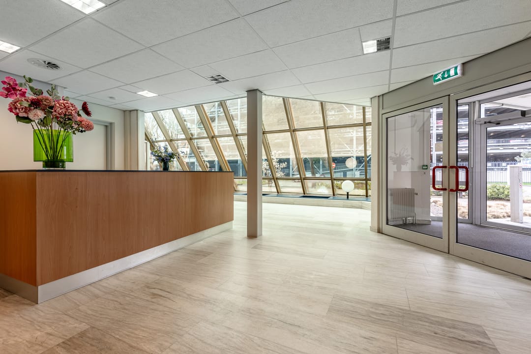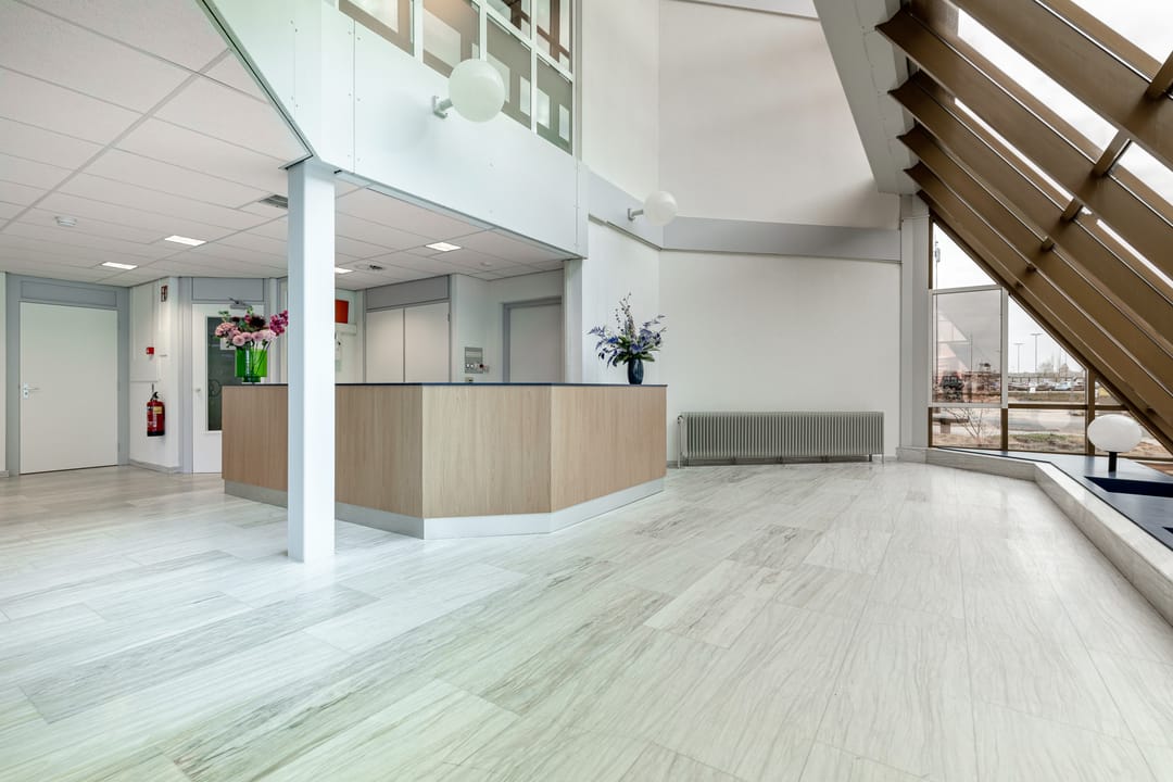 - 2 volwaardige, zelfstandige hoofdentrees met elk een receptiebalie, natuurstenen vloerafwerking en elektrische toegangsdeuren;