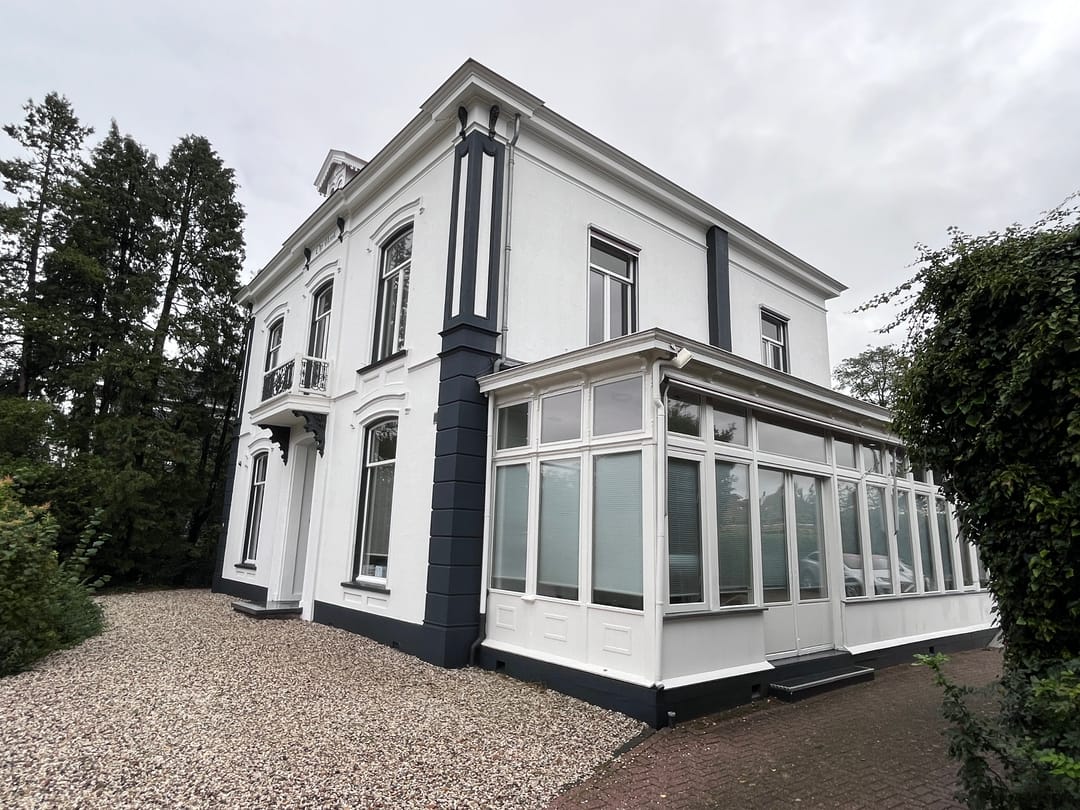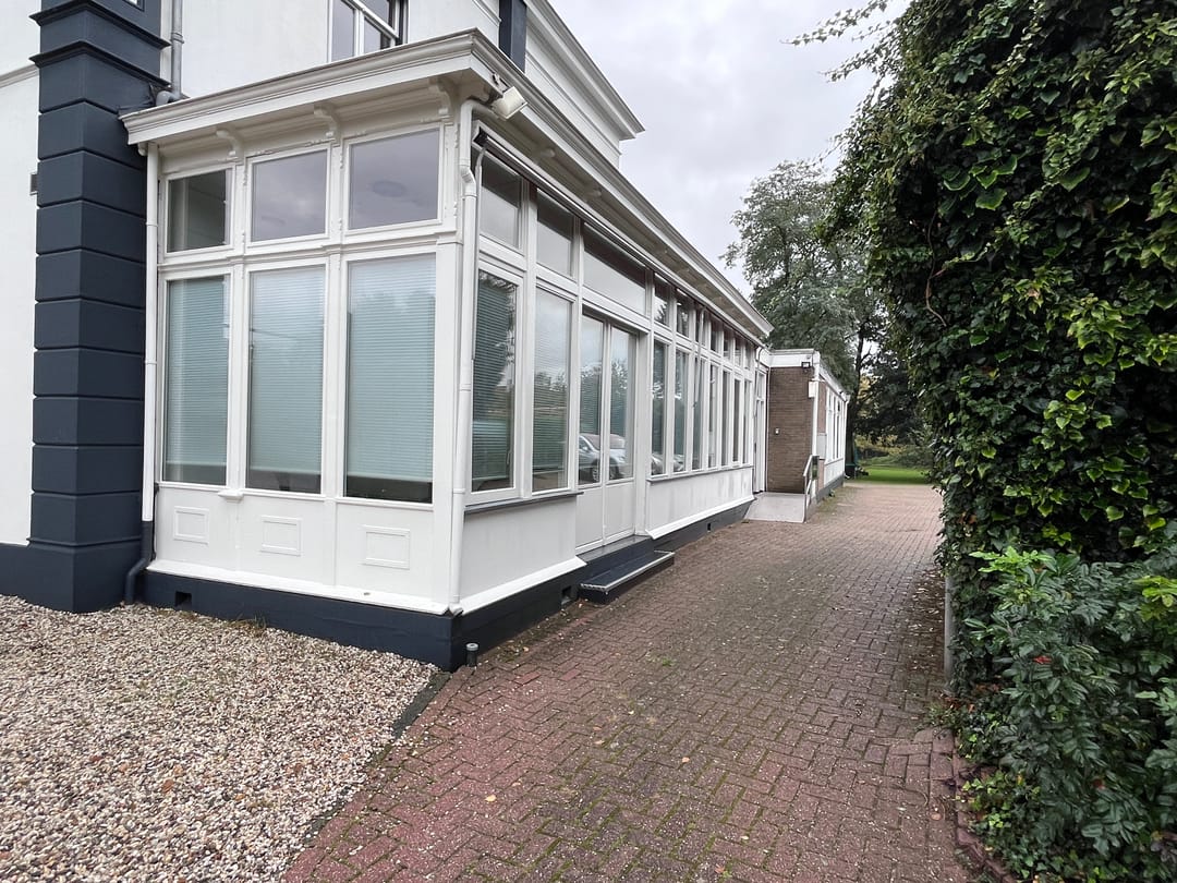 Fraaie luxe kantoorkamers met zijopgang en rolbaan. Dit deel ligt aan de tuinzijde van het object en kijkt over het groen. Rustige locatie. De kamers zijn licht en beschikken over luxaflex. Het betreft hier een zeer goed onderhouden kantoorvilla met kamers met oppervlaktes die variëren van 11 m2 tot 20 m2. In het midden bevindt zich een grote werk- of ontvangstruimte van ca. 85 m2 met een receptie, een opbergwand en twee toiletgroepen. Dit goed uitziende object met een klassieke en voorname uitstraling ligt direct bij het station Velp en op loopafstand van het winkelcentrum. Daarnaast zijn er goede uitvals mogelijkheden op het landelijk wegennet. A-12 afrit op ca. 1.500 meter afstand. Ook voor ontspanning zijn er voldoende mogelijkheden als wandelen, winkelen en fietsen. Er bestaat een mogelijkheid voor parkeren van een beperkt aantal auto's op het eigen terrein.