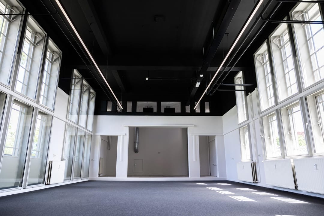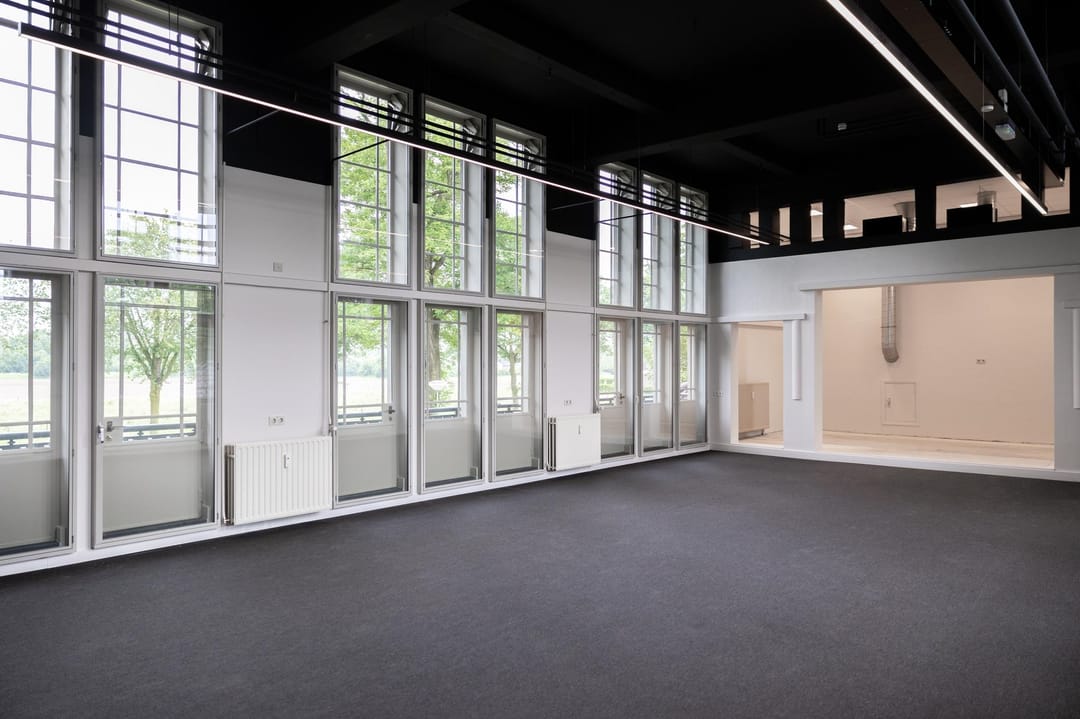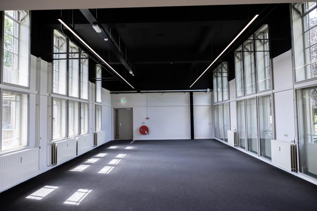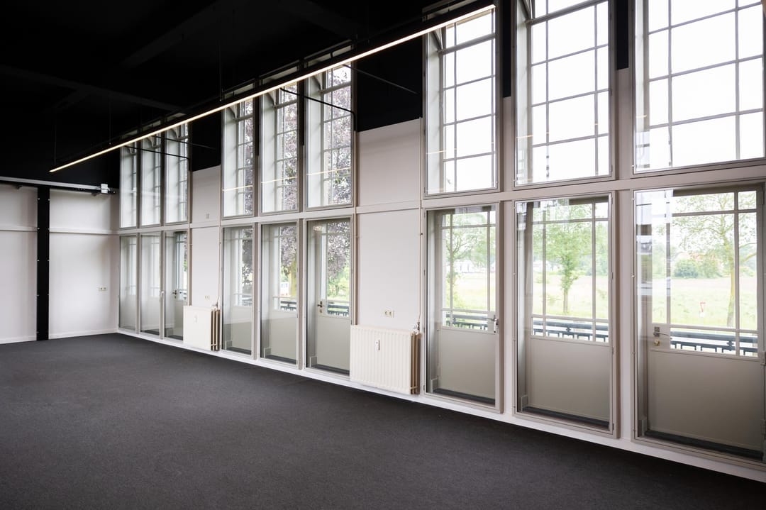 Het B gebouw is het afgelopen jaar volledig gerestaureerd en verduurzaamd. Je kunt genieten van prachtig gerestaureerde ruimtes met originele details, maar toch met een hoge mate van comfort. Op de eerste verdieping van het B gebouw is een grote ruimte van 107 m² beschikbaar. Dit was vroeger de regimentskamer. De regimentskamer was het kantoor van de commandant. Hier werden officiële en tradities tentoongesteld en uitgevoerd. Zo hingen er bijvoorbeeld vaandels en andere attributen, maar er werden ook bevorderingen van officieren uitgedeeld in deze kamer. De ruimte heeft een hoog plafond, hoge ramen aan beide zijden van de ruimte en een eigen mogelijkheid van een keuken.